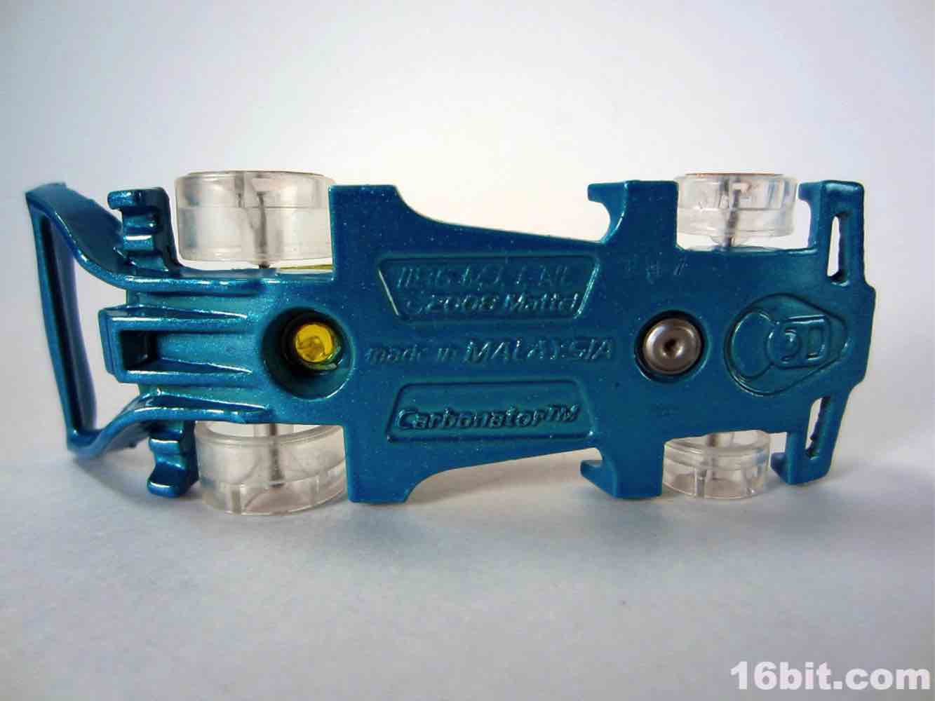 Mattel Hot Wheels X-Raycers Carbonator Die-Cast Metal VehicleThis particular Hot Wheels car isn't new, but the X-Raycers Carbonator is new in this deco. The design is incredibly clever - a bottle of soda is labeled "Carbonator Race Juice," and the clear plastic bottle rests atop a metal base. The kicker is the metal base is also a functioning bottle opener... which odds are nearly no kid is actually going to use nowadays since soda in glass bottles is something of a premium product. I'm not sure how many other cars are based on their functionality with other items - there's Fast Cash, a money clip, as well as the Fig Rig which is compatible with Lego toys.