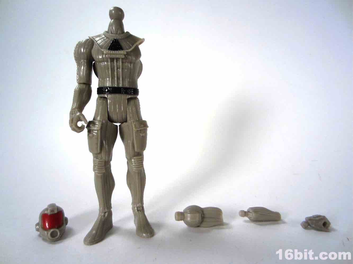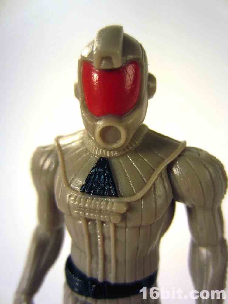 As with before, the figure looks and feels like some wonderful refugee out of the 1980s - the coloring isn't too far off from the earthy colors of Robo-Strux or some Starriors, and the red visor really breaks the figure up. If you told be this was an Atari VCS hero, I'd believe you. As with before he has 15 points of articulation and can be separated at each and every one of them with either a Glyos joint, a mini Glyos joint, or a ball joint in the case of the skull/neck connection. Since you can swap out parts with other figures, you can get some pretty diverse looks in a hurry - other color hands or feet can quickly become boots or gloves.