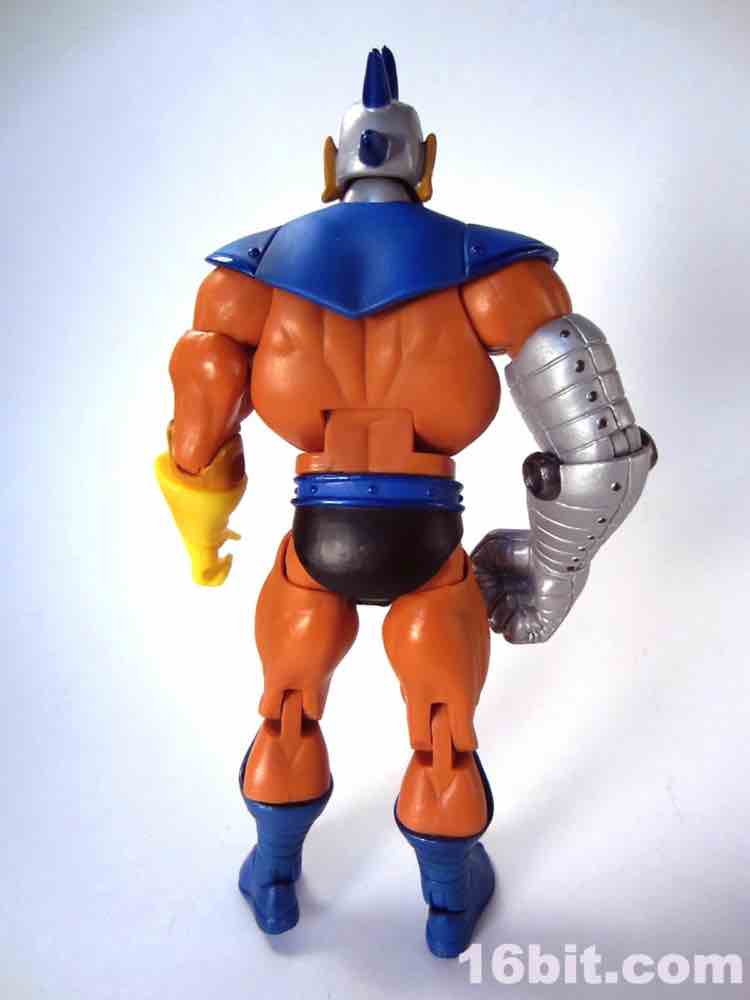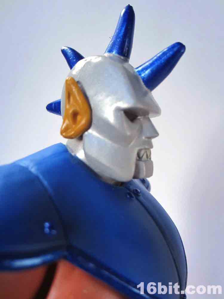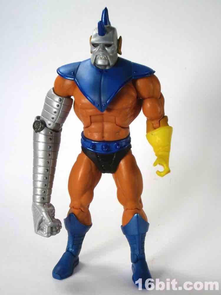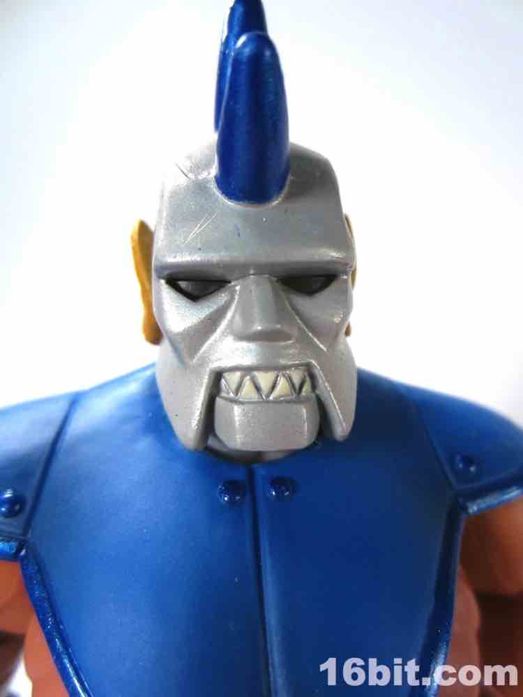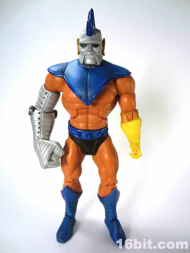 The head is quite close to the animation model, complete with sharp teeth. His backstory is that part of his body got blasted off and replaced with Photanium, a super-strong metal which he mined and later stole. Hey, whatever works - he comes off as some sort of giant-fist cyborg punk, complete with spike mohawk. It really looks like it could have been a figure in the 1980s (with less detail), so Mattel made a good selection on picking this one for its action figure line.