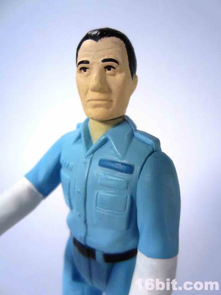 Mr. Holm was Frodo for a radio adaptation of The Lord of the Rings, old Bilbo in the movie versions, a monk in The Fifth Element, and generally just lights up the screen whenever he appears - especially while he aims to bring it down a few pegs. The figure matches the movie counterpart better than most of the figures, as the blue suit over a long-sleeve white shirt is replicated here fairly accurately. The short haircut is 1970s-toy chic, with his pristine outfit standing out from his crewmates in a way that makes a heck of a lot more sense after you've seen the film. While mildly creepy on film, the toy comes off as unassuming and not remotely dangerous - he's just a white guy with a gadget, nothing more.