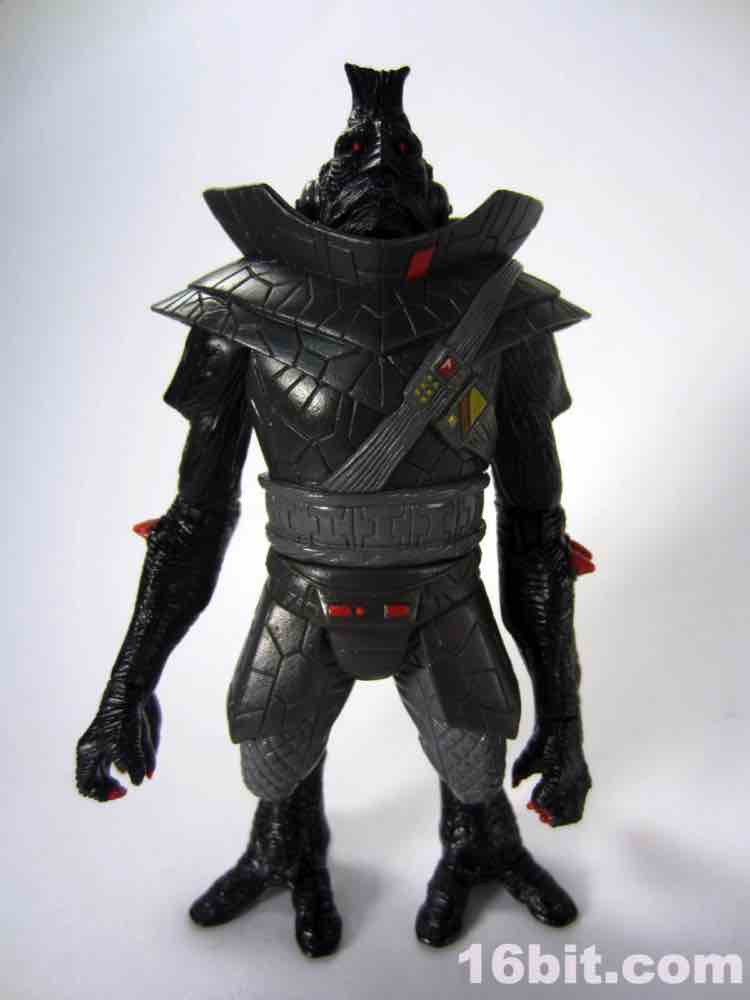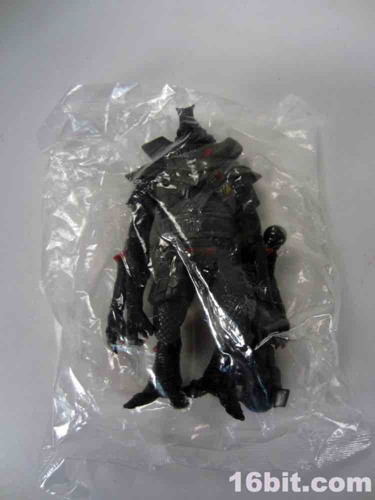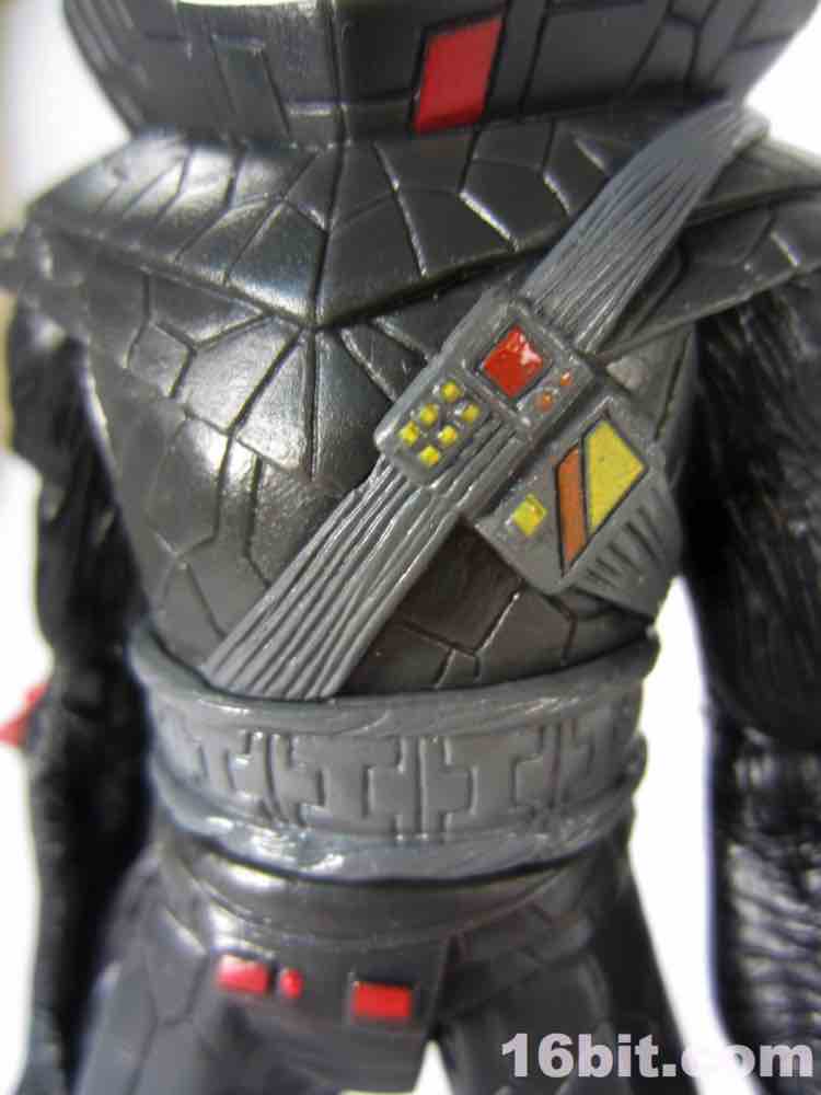 As of yet there's no matching "reverse" figure - a black torso with grey limbs - but it wouldn't surprise me to see one pop up in Onell Design's shop or somewhere down the road. It's really sharp - the black plastic is just glossy enough to make the skin texture shine in new and meaningful ways. It's not that pink or purple didn't look good - it was a nice first attempt - but this one is really, really nice. The wrinkly face and gnarly arms work extremely ell in this shade, and while the red spikes look a little silly in the arms it still ain't bad. Unlike the previous release, the Horsemen added multiple colors of paint so in addition to various lights and buttons being decorated, he also has a painted sash and control box of some sort on his chest. They even painted his pants, which is a first for this line. It's the same deco on the green and black repaints, but it's still cool.