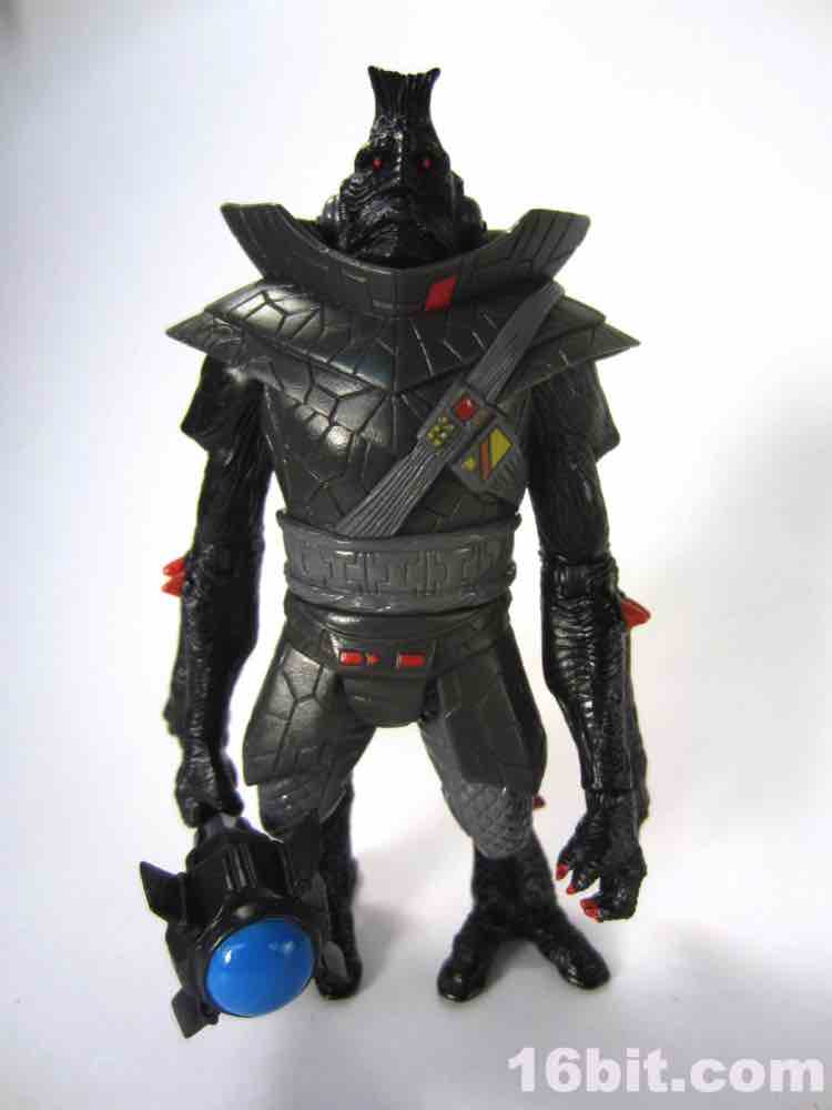 The figure has the same great sculpting as before, but the main reason to jump at this 5 1/8-inch figure is the deco. It really brings out the scaley armor, the lined skin - seriously, you'll never see better skin on a 3 3/4-inch alien figure, and I've looked - plus other notable elements. Two of the four hands are designed to grip the weapon, and on my sample they have no difficulty doing just that.