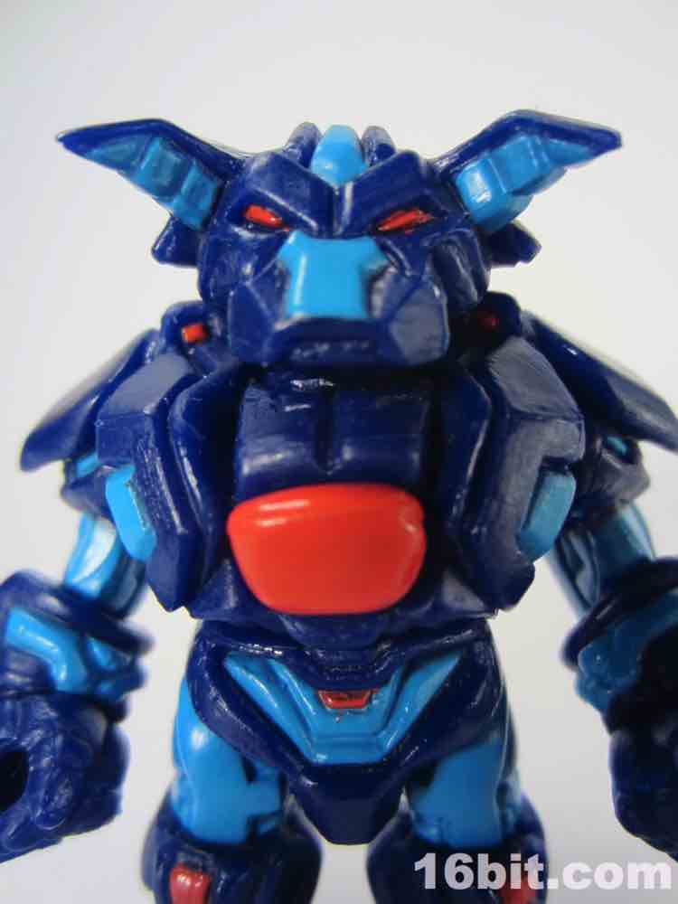 You've bought one of these before I hope - if not, go do so. The Onell Design mutation on the Battle Beasts concept really works well, with a "black core" painted red in his chest and fully swappable with that from other figures. He's cast in this amazing blue plastic color which may well be one of the greatest released so far. As always, the design is well articulated with Glyos pegs, meaning you can swap parts with other figures. The hands have pegs on them, rather than holes, so they can be easily swapped with few other figures - if you have Ggripptoggs or Ggrapptikks, their hands make exquisite Armorvor "paws."