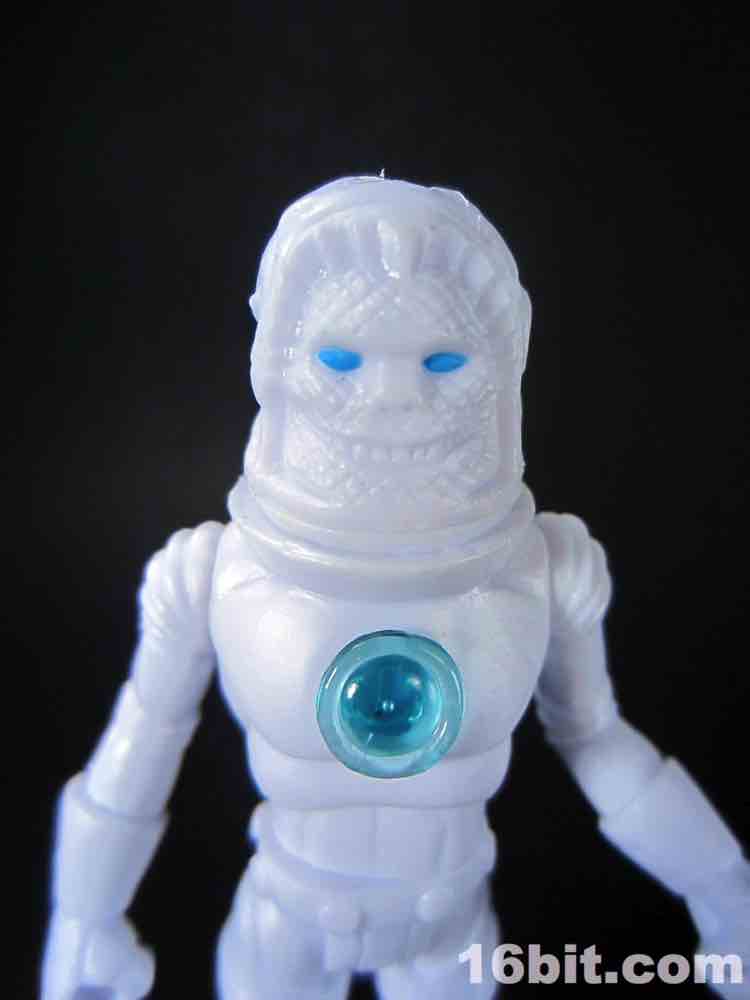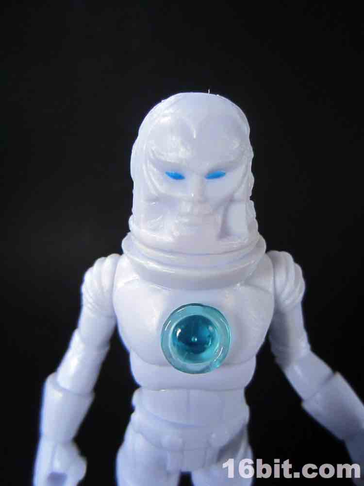 The face-changing gimmick is less amazing when the head is unpainted, because if your eyes are bad all you see is that the eye size changes a bit on the figure. The textures and expressions are lost in unpainted white plastic, which sort of makes this one big giant step back - the regular two releases, and the two "Cosmic Creators" releases were stunning, gorgeous figures that looked as if a sci-fi illustrator's drawings came to life and took up residence on your desk, saving you a trip to the local art gallery to drool over it. The textured reptilian skin is still there, but you're going to need to add a wash or some paint to see it. The suit's whiteness makes it blend in with the rest of this 8-pack - they really do look very similar when color is no longer a factor. You can still swap parts, but why? It is what it is - perhaps you will find it charming, but the other releases are so beautiful, this was sort of a whimper when it became (to date) the last figure of Metamorpho. It would appear unlikely that there would be a reason to make another one ever again as the original audience for this line has aged out of toys, and the young nostalgia boom from action figure magazines had difficulty keeping up with the recolors over the years.