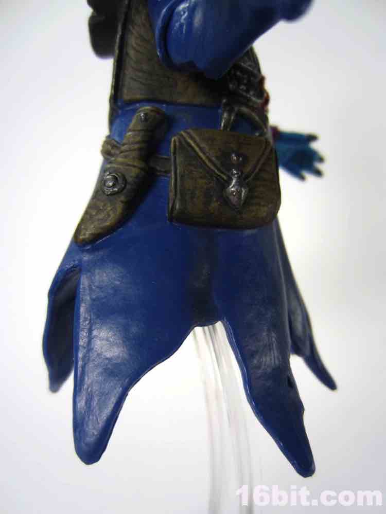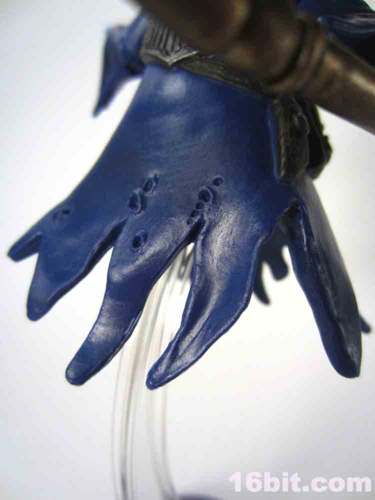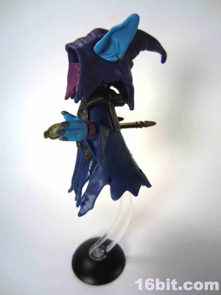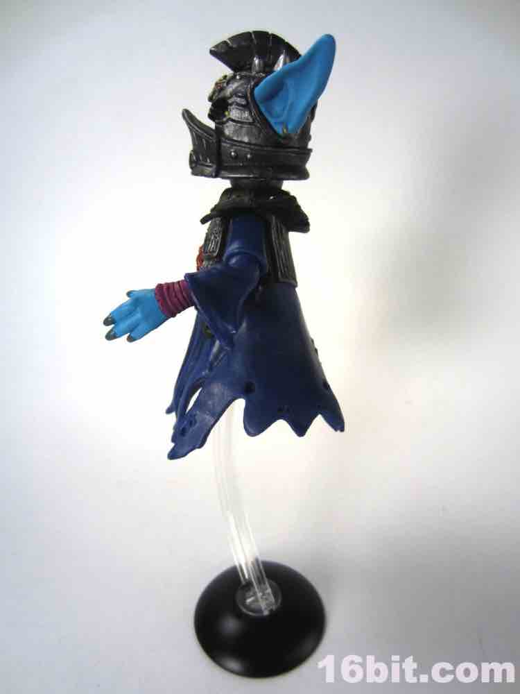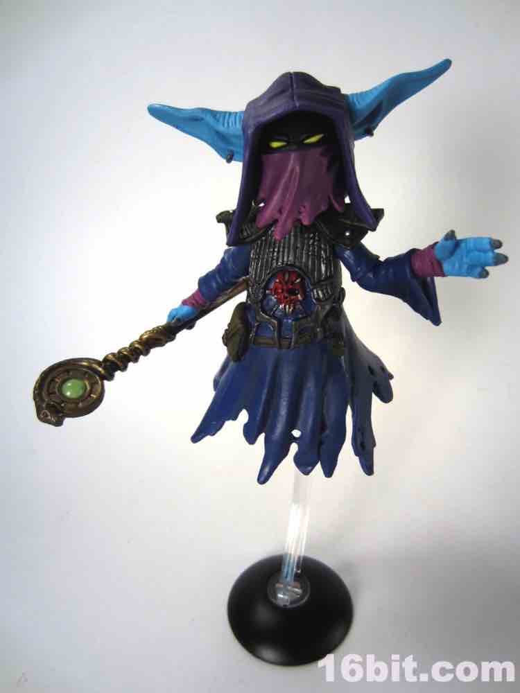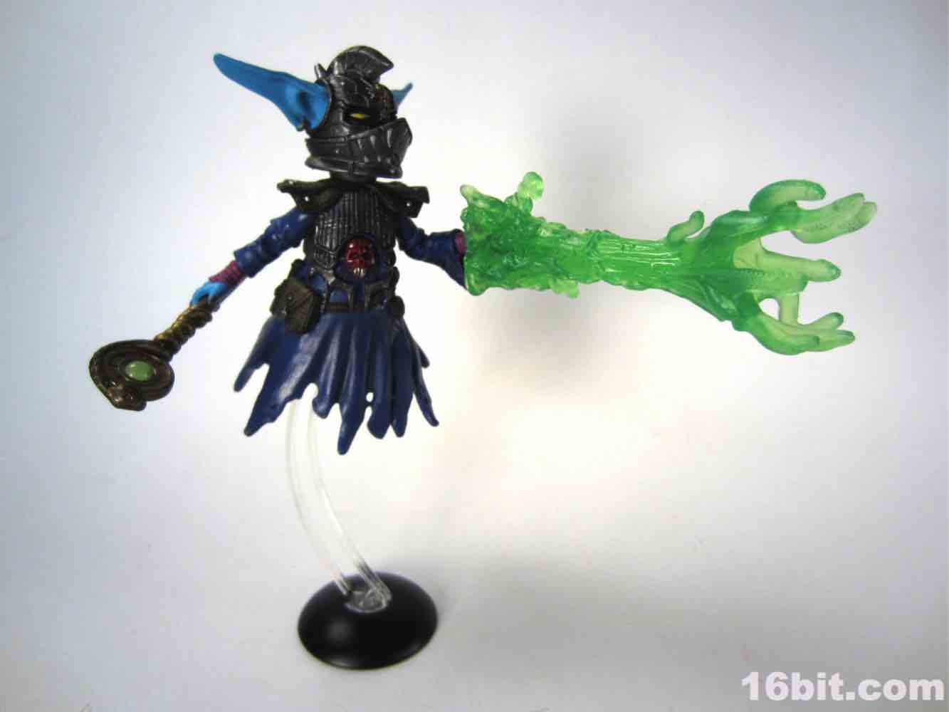 In terms of overall quality, the engineering isn't quite as fun as Orko. The red-robed runemeister had a ball joint on his stands, letting him sort of flail around and be posed in mid-air. Gorpo here has a peg, so he can only stand upright - and balancing him on the stand can be tricky with his weighty accessories. The heads can be swapped at a ball-jointed neck peg, with swiveling wrists and the bend-and-swivel movement on the elbows and shoulders.
