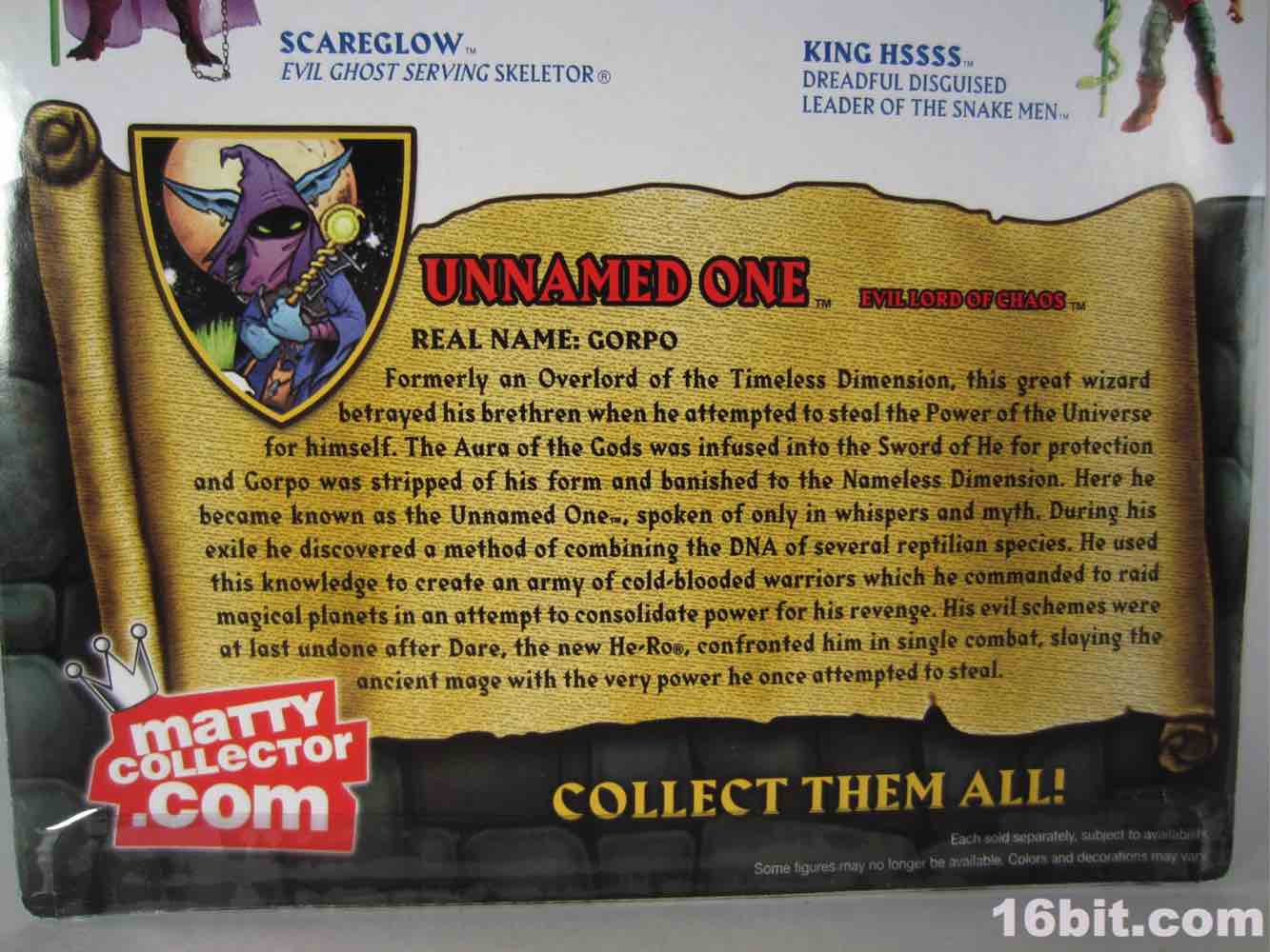 When someone writes the history book on this line, the Unnamed One will make an interesting footnote. His real name, Gorpo, is based on a preproduction name for Orko and only the second Trollan character to make plastic after three decades. Unlike previous years it was produced without letting fans know it was coming - the idea was that it would be a mystery until delivered, sight unseen, avoiding criticism or analysis until it just showed up. It did leak out early, and as subscription bonus figures go it's probably the least anticipated by virtue of the fact it's one of very very few completely new-to-us designs and a new character. This guy is responsible for the creation of the Snake Men, something which I honestly never really thought about. On the other hand I've thought a lot about wanting to see more Trollans and while I expected a Montork or Dree-Elle, I'm not complaining about the Unnamed One. Honestly, I kind of wish I had more time to look forward to it - it hasn't been something I spent much time thinking about, so its appearance lacked the joyous enthusiasm I had for Wun-Dar or Shadow Weaver. Anticipation is an important part of collecting!