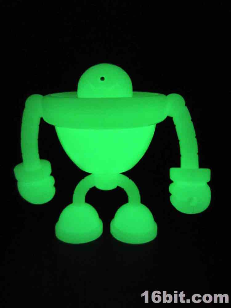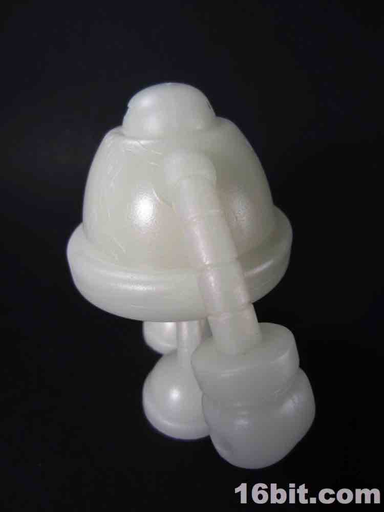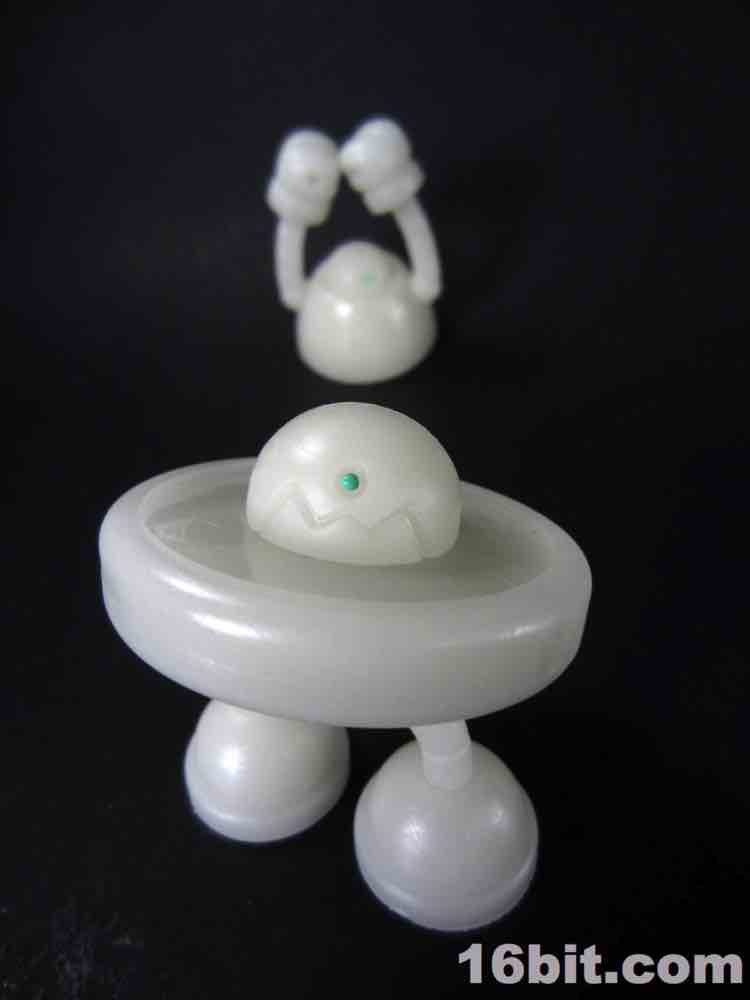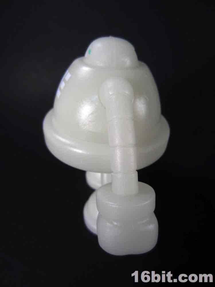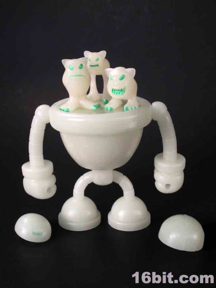 With green painted eyes and that white tampo, it's a nifty-looking figure even if it didn't glow. Actually, that's being a bit generous - the figure's only real shortcoming comes from the alternate head's "mouth," which sort of goes invisible because of the lack of deco. Glow in the dark plastic can be a black hole which sucks up the figure's detail and absorbs a bunch of light, so painting in various elements makes a big difference in giving it some personality. I'd have loved a mouth line or even a painted jaw, but I still basically got my eight bucks worth. Should you get the opportunity to own a "Glowbon" I highly suggest snagging one.