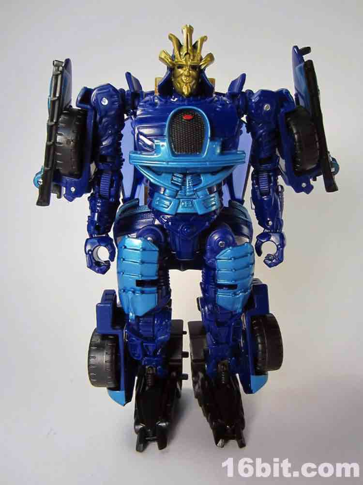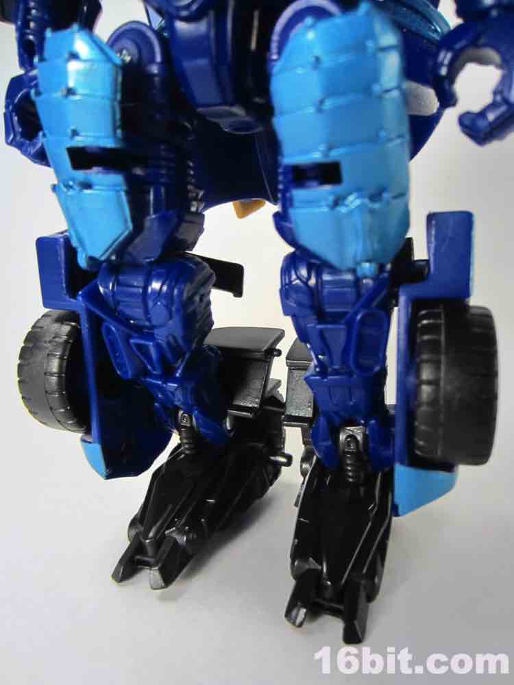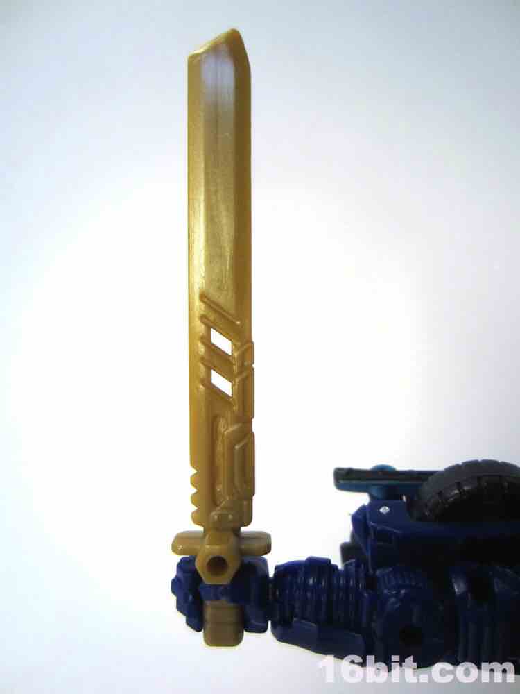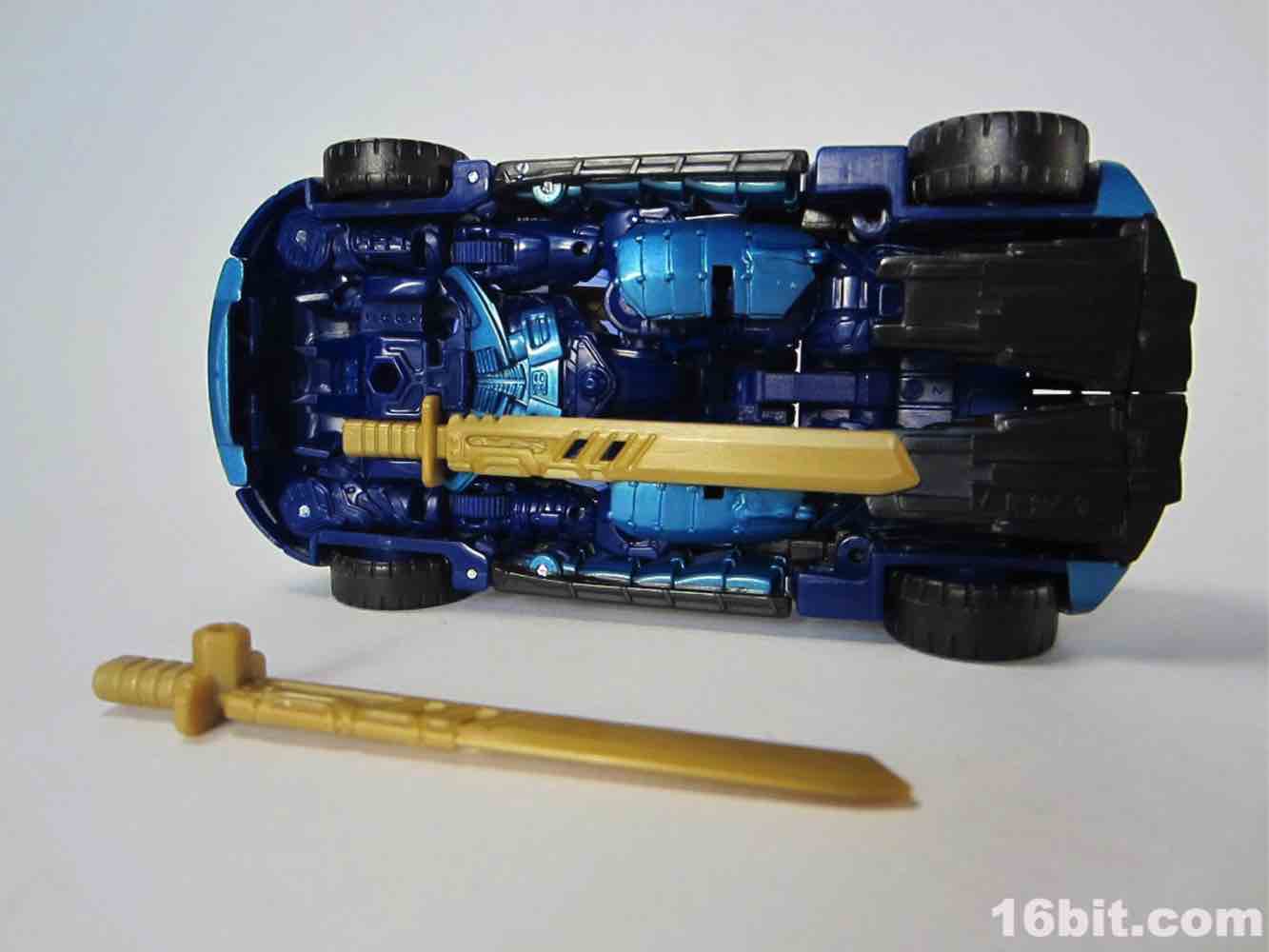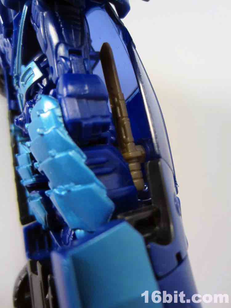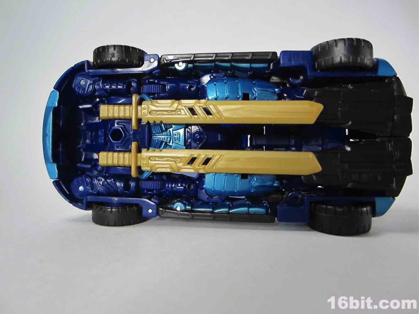 Transformation is easy - the box says it's 16 steps, but I basically figured it out in one or two minutes without the instructions, and yes I am proud of that fact. It's not complicated at all, and nothing pops off or falls apart. For all I know this means it's off-model from the movie but it's not like I'm probably going to see it anyway. I can just enjoy the toy and hope that it doesn't end up as a character that talks like Nute Gunray and maybe gets repurposed as something interesting in IDW's More Than Meets the Eye comics. Maybe Cyclonus' ex-boyfriend or something. Where was I? Oh yeah - transformation's a snap, and the swords store easily in and under the vehicle mode.