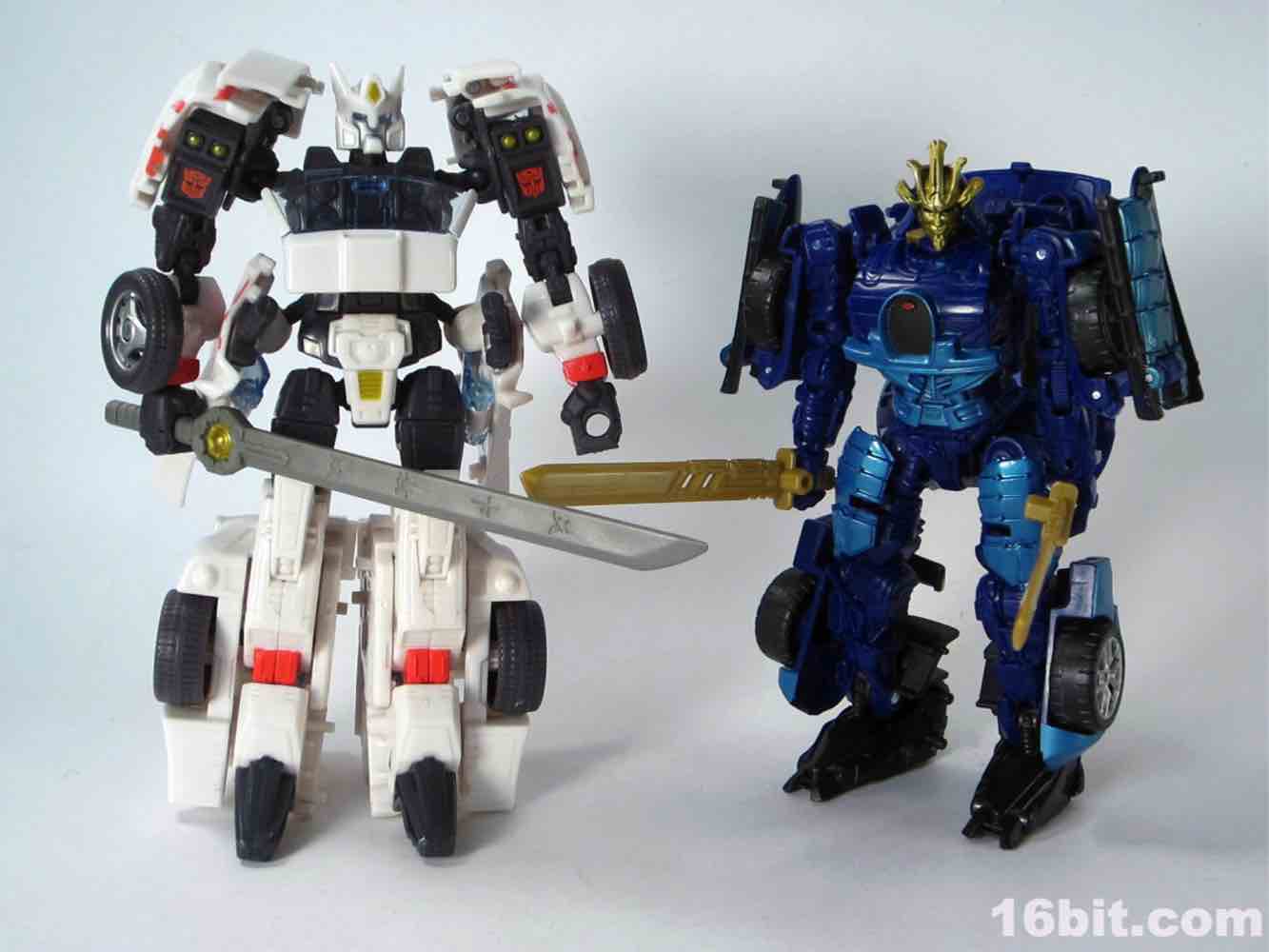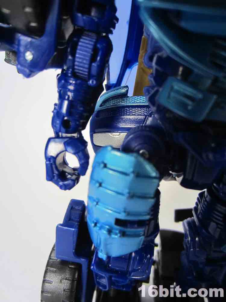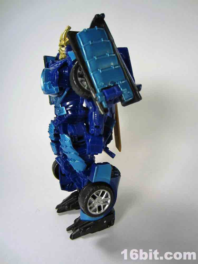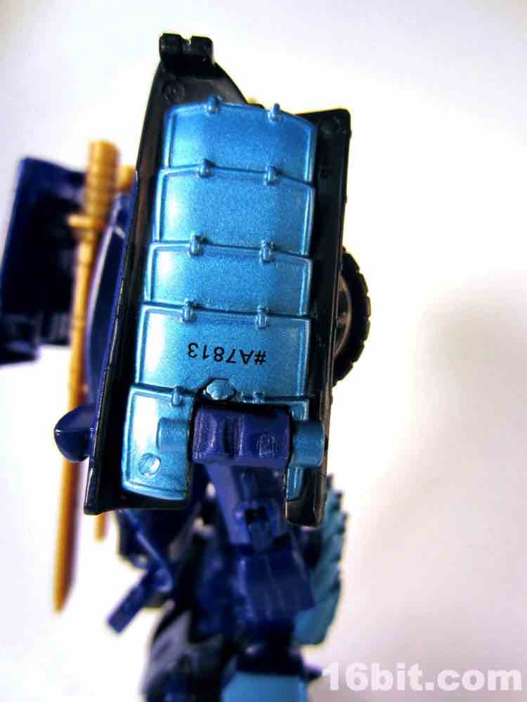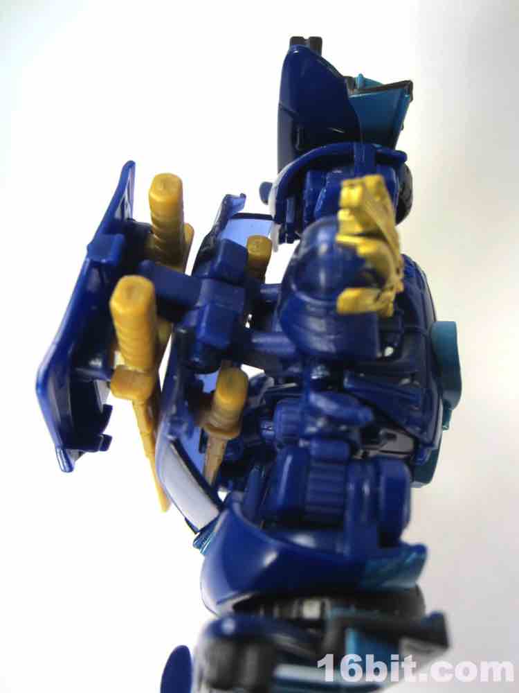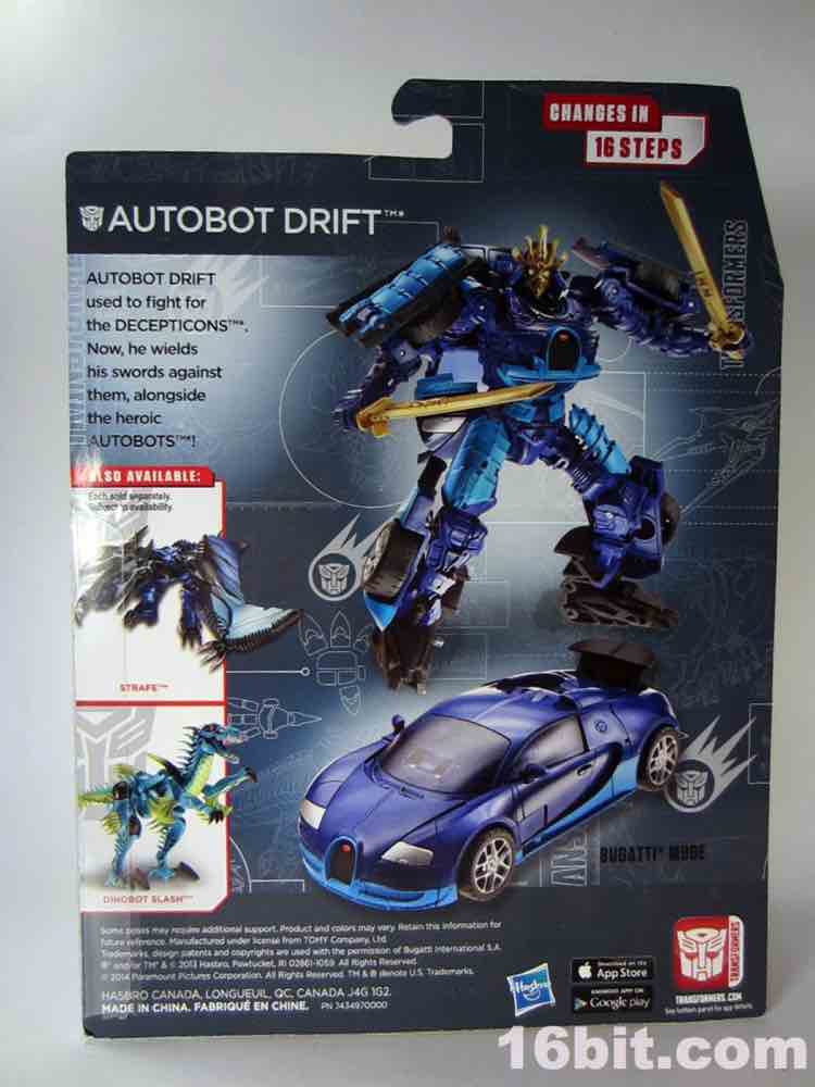 If you're a cranky old fart like me who doesn't want no movie toys dagnabbit I suggest you stick with that attitude. I would probably never have purchased this on my own, but the tolerance levels on the plastic is some of Hasbro's best, the swords aren't at all rubbery, and everything just looks good. As I mentioned above, it feels less like a movieverse toy and more like someone adapted an abandoned Pretenders shell concept inside a real-world car. It's so weird I can't help but love it. My only real complaint - history will prove me right or wrong - would be the golden swirly swords. There's something nasty known as gold plastic syndrome and while I personally haven't had a cracked Goldbug or Electro I do expect that this form of heartbreak isn't far off. I'd have loved it if Hasbro molded them in blue and painted the blades gold or some such, mostly because I always worry that my beloved toys will crack or break even if treated with the utmost care over the next few decades. I know that long-term survival probably isn't in Hasbro's playbook but after seeing flaking vac-metal paint on non-gold and non-silver Transmetals elements and the history of gold plastic, it's unfortunate Hasbro is bringing both of these back in this new line. Having said that, if you don't want to be reminded of your mortality, forget what I just said and buy Drift because it's the corniest toy you'll be ashamed that you love this year.