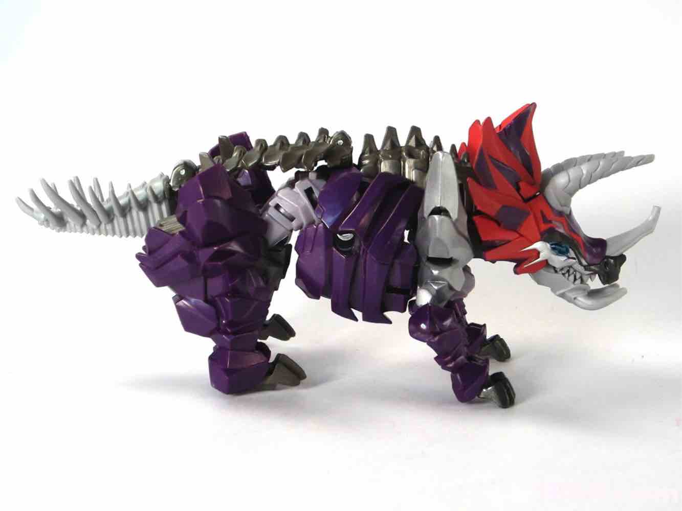 Item No.: Asst. A6508 No. A7813 Manufacturer:Hasbro Includes:2 long swords Action Feature:Transforms from Triceratops to robot Retail:$14.99 Availability: May 2014 Other: M4 Series #003