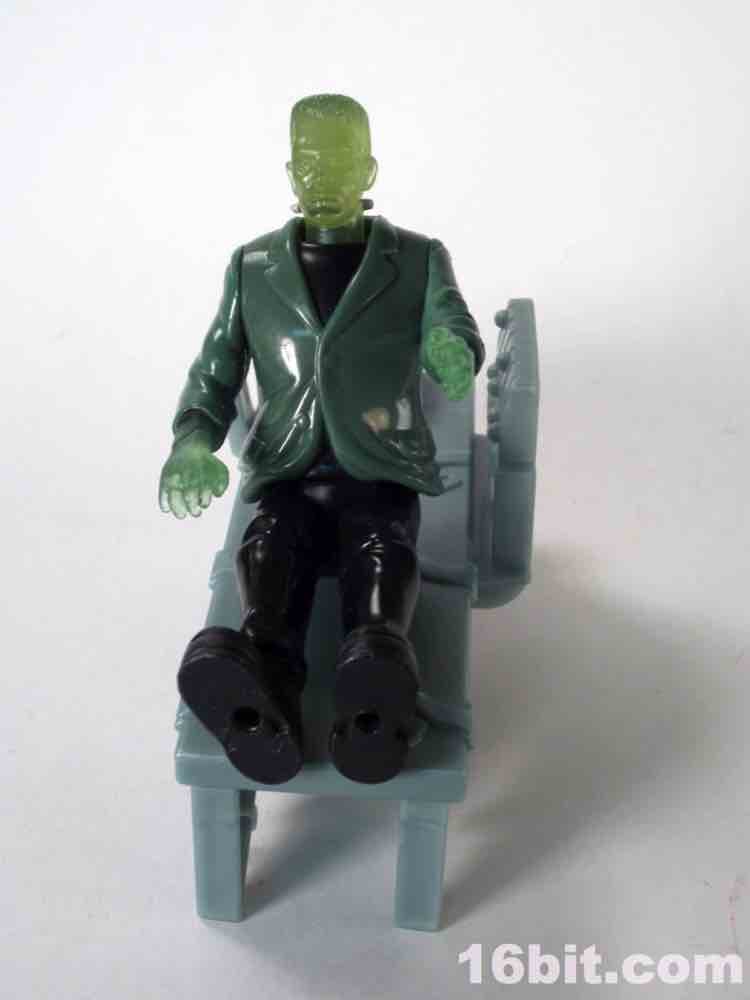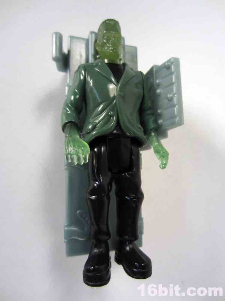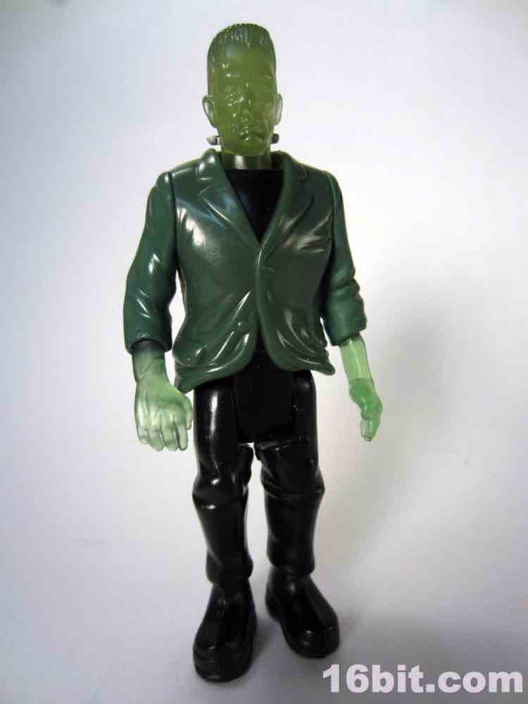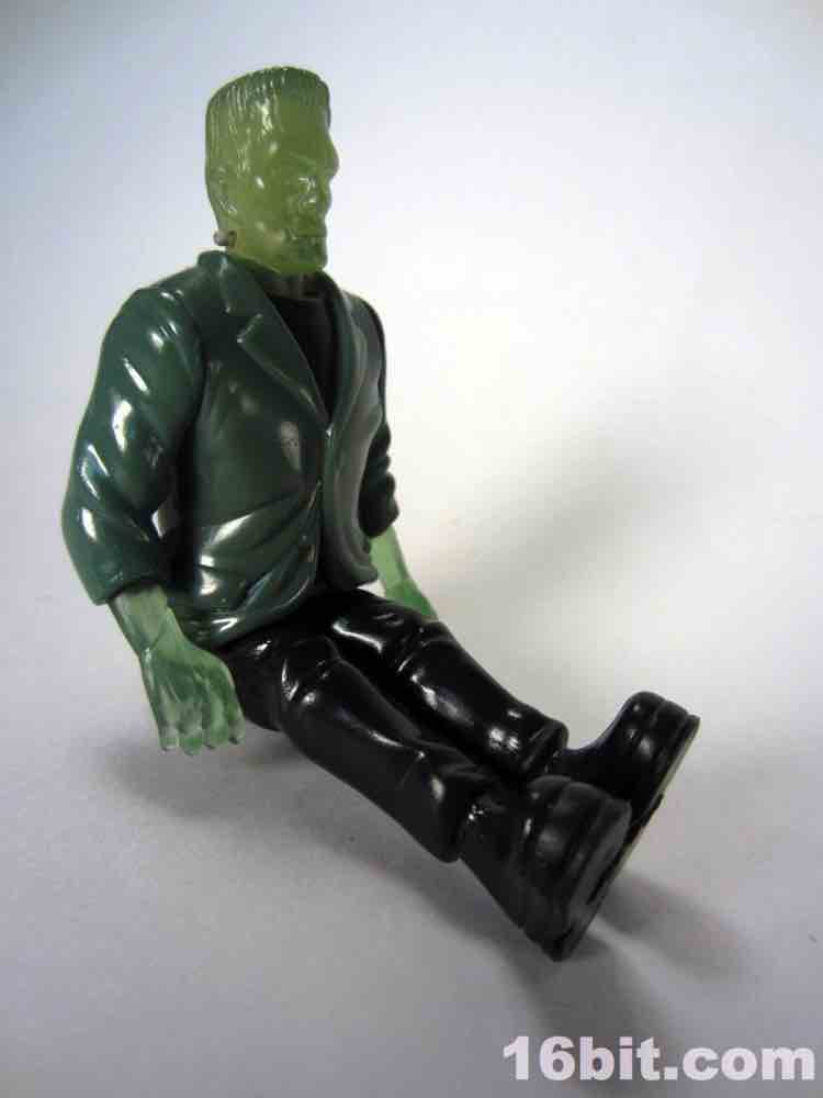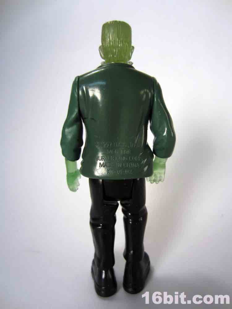 Due to the clear skin, the figure has a little less personality than his cohorts. There's no paint on the face, and I think that was a failing here. At least his silver neck bolts got a little paint, but the wonderful Karloff-esque face sculpt is difficult to see unless you hold him up to a light source. The hands are more Kenner-esque than modern ReAction figures, as they captured the essence of a hand not necessarily having to grip an accessory if one is not included. (See: 1979 Boba Fett, Walrus Man left hands.) The thick, platform boots are present as are black pants, plus a tattered-looking glossy painted jacket covering most of his body. The amazing thing is that given his action feature and overall scale, this figure probably could've sold for five or six bucks at a toy store rather than be relegated to the thing you have to throw out of the bag to get to your french fries faster.