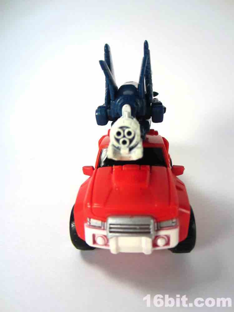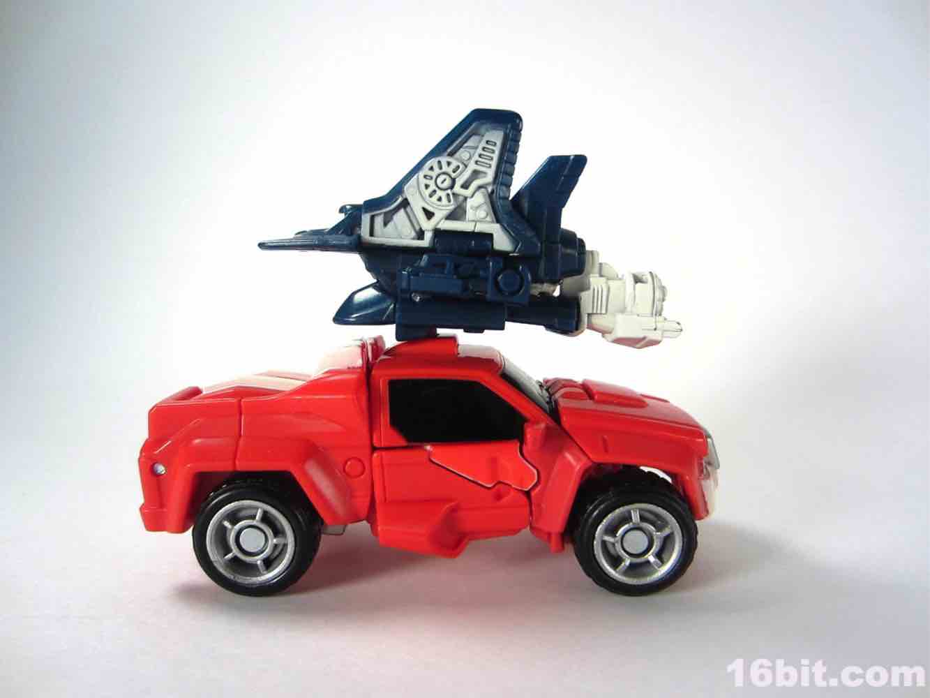 The crossover mode - I guess that's what it's called, I don't know cars - is good. The wheels roll freely and it's sturdy, relatively free of action features save for a 5mm hole in the hood so you can mount Flanker, Energon weapons, or a BMOG bit. Like most vehicles, there's not a lot to say here - you get black windows, silver bumpers, silver wheels, and a few other sparse details. It's more expensive than similarly sized toys of 9 years ago, but that's life.