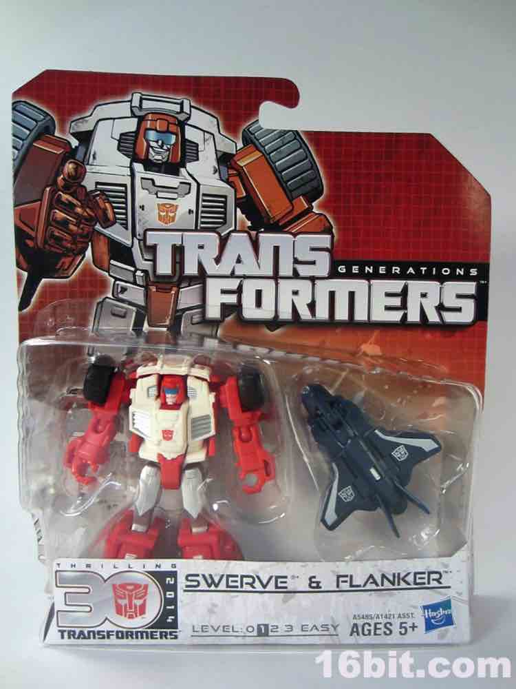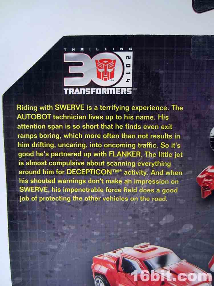 Where to begin? I was wondering where the heck Swerve with Flanker was - despite showing up overseas late last year, after being revealed what feels like a year ago, the figure showed up in my neighborhood about a week ago. I checked the date stamp on the figure's cardback, which indicates my sample was manufactured in March 2014 - so Hasbro wasn't sitting on these like some other delayed items. It's just, for some reason, they put out Megatron and Starscream in July of 2013 and waited this long to put out the next wave. The good news is that the wait was worth it. I just read most of IDW's More Than Meets The Eye comic in the last month, and I totally get why people are going nuts for this guy.