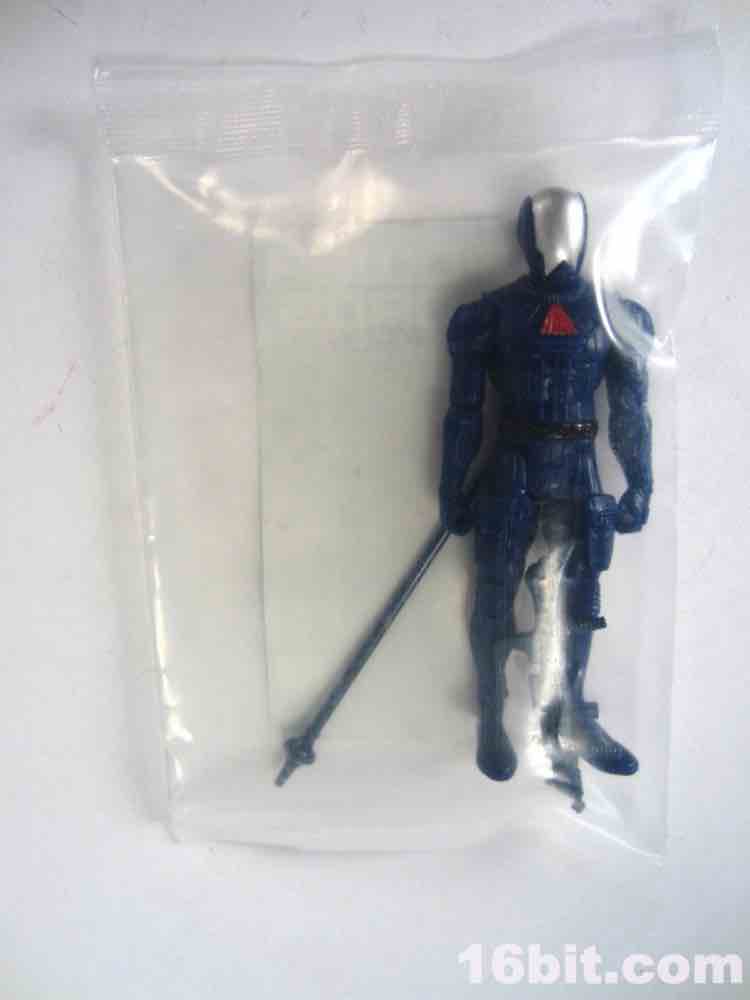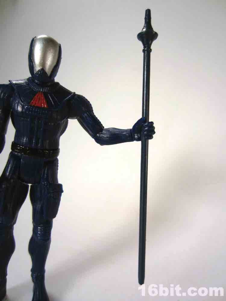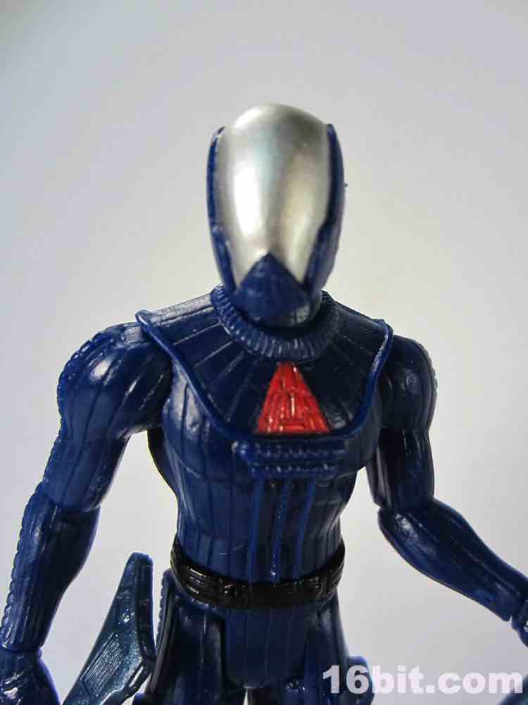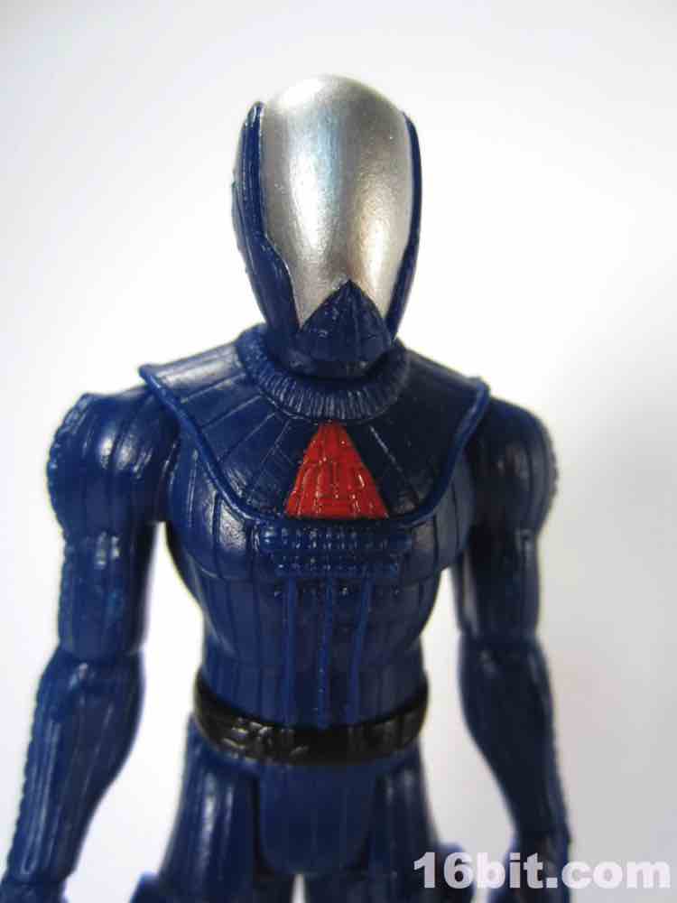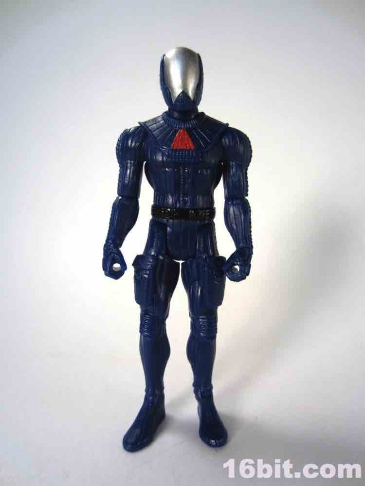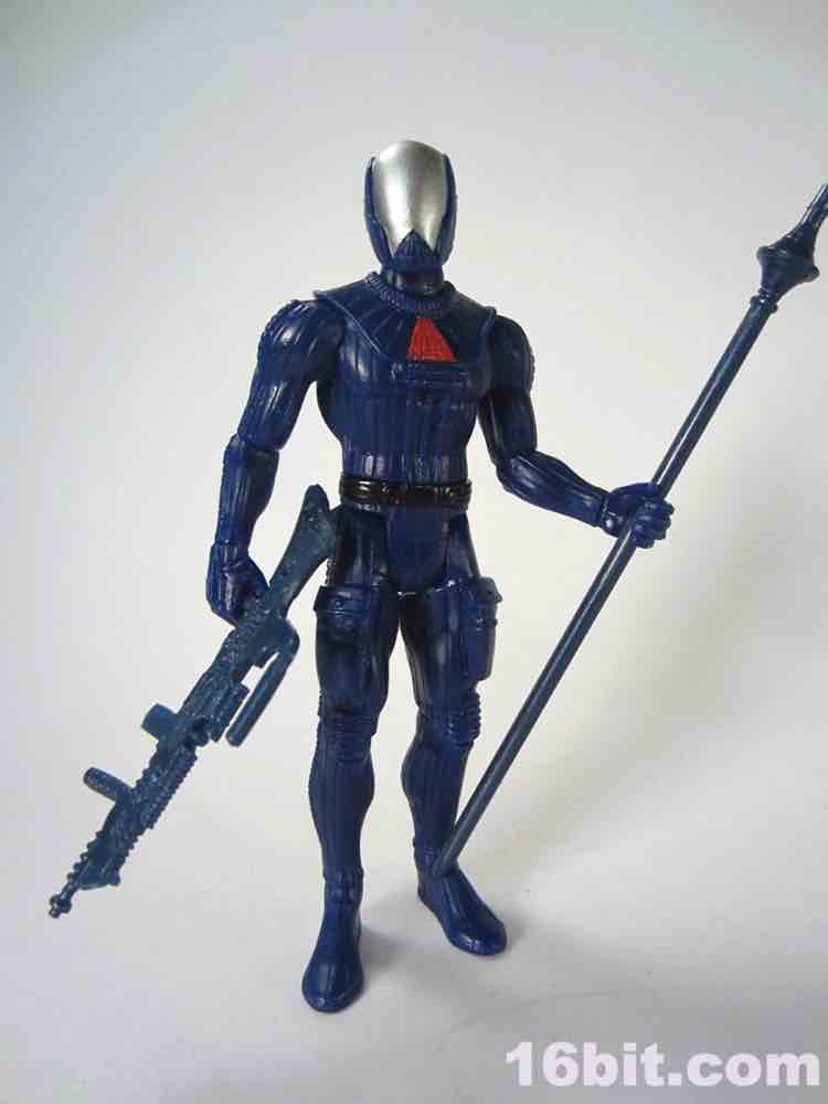 Available in black, white, grey, tan, red, and now blue, this figure looks more than a little like Cobra Commander - this builds in a ton of charm. The silver mask looks wonderful up close, and the red triangle is a great abstract Cobra symbol. The blue doesn't quite match Mr. Commander, but it gives you a visual reminder of what his pajamas might look like. As with the other releases, it has 15 points of articulation and at each one, you can pop him apart and swap elements with other Power Soldiers and many Glyos-compatible figures. The wrists and ankles use a very small mini Glyos joint so far only used in Power Lords and a few Outer Space Men, and the end result is a surprisingly robust figure - it's not something that really lends itself to army building, but it certainly looks cool. The black belt blends right in to the dark blue plastic, but hey - another fully-painted Power Soldier in blue gear is supposedly still coming.
