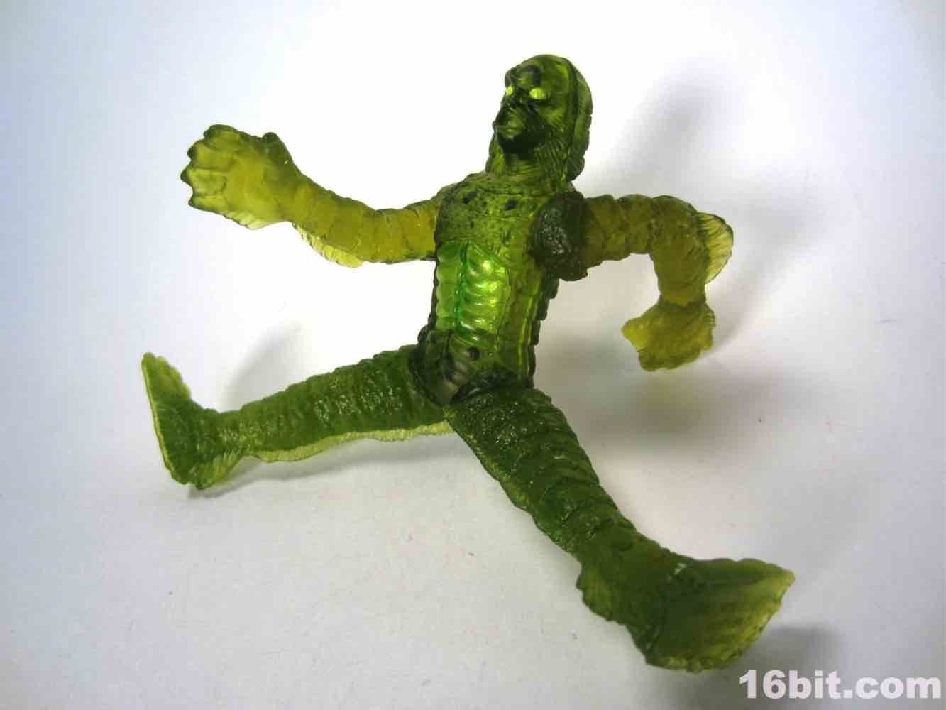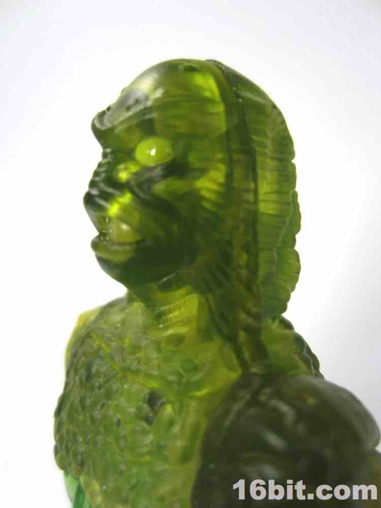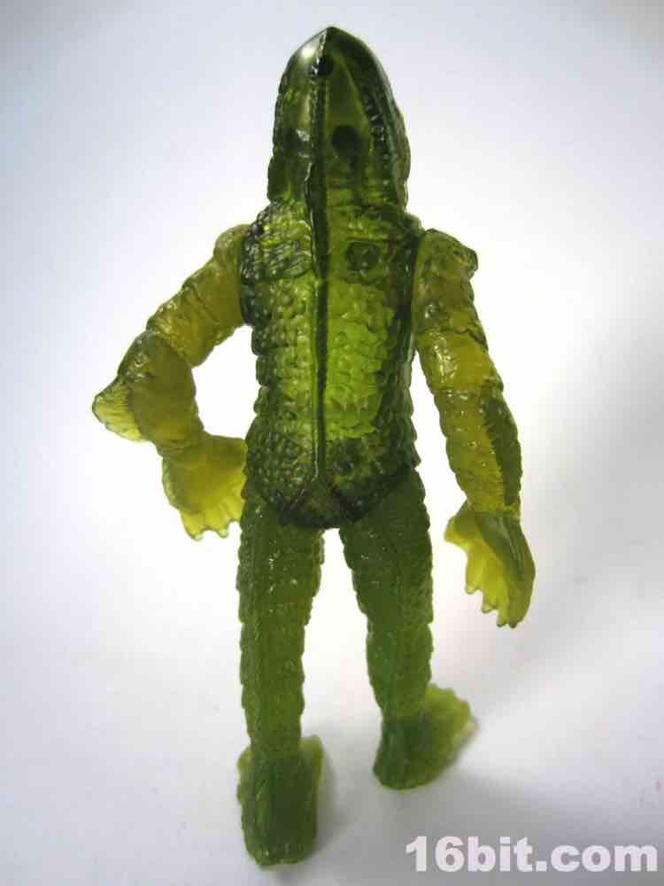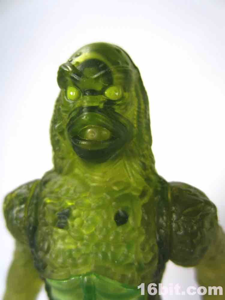 With no paint other than a tiny pair of green dots for eyes, the figure looks like a vague scary green blob from a distance. This scaly fellow has a ton of sculpted detail that is all but completely absorbed by the plastic, making it seem outright dull unless you hold it up to a bright light source. It's impossible to deny the sculptor did an excellent job with oversized feet and hands, making this a fantastic figure. Almost. It comes close, but it also proves just how important deco could be. Were this some bizarro chase variant it'd likely be remembered as a classic, instead it's just sort of pretty good.