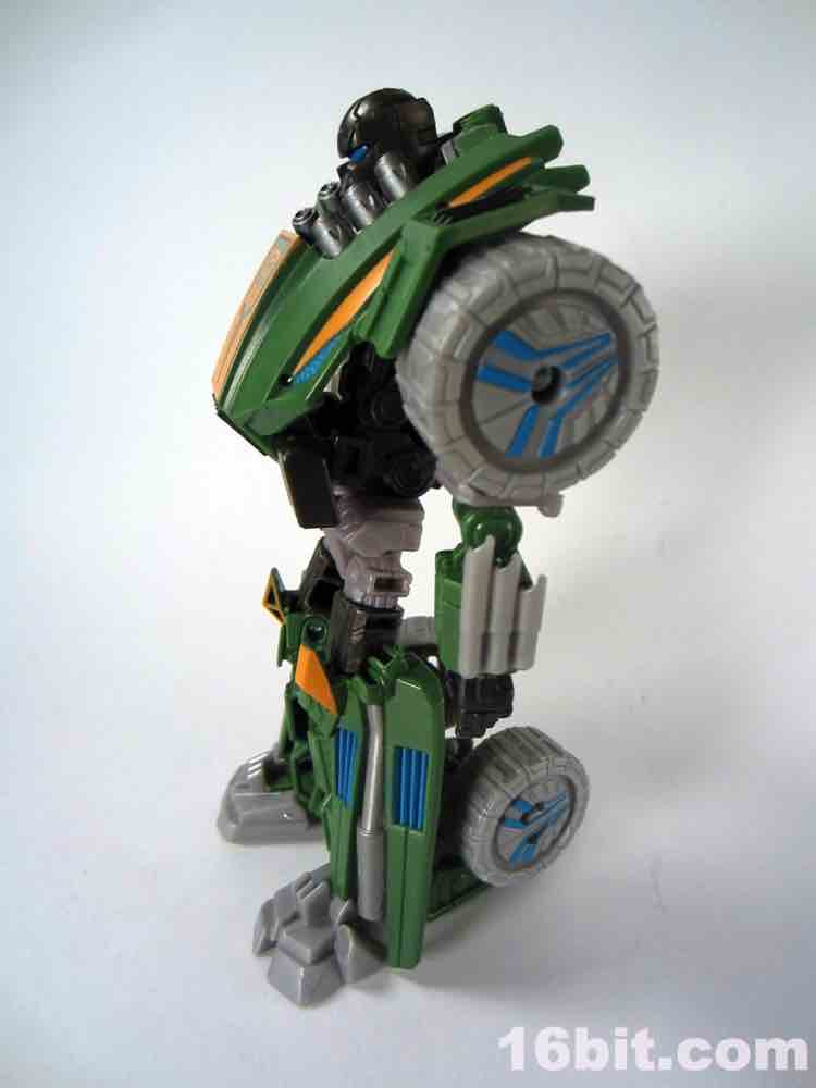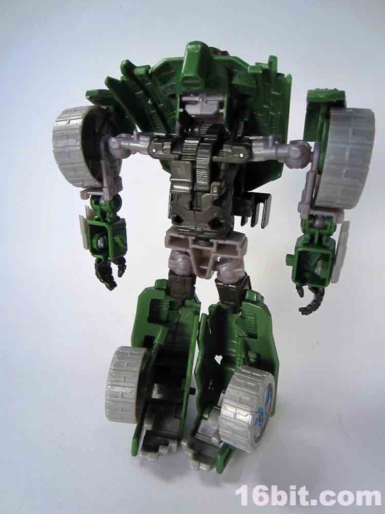 Standing about 5 3/4-inches tall, this member of the Wreckers has a pretty good (if somewhat hollow) robot mode - flip him around, and you can see where he isn't. Due to the requirements of having four modes, this is to be expected - there's a lot of stuff to ensure that this can be just about anything the engineers can fathom, which is why you can see robot hands in his feet. Of this entire group, he probably has the best-looking robot mode with real arms and legs, and nothing seems overly puny or loose. It feels like a real toy, and that's a big plus.