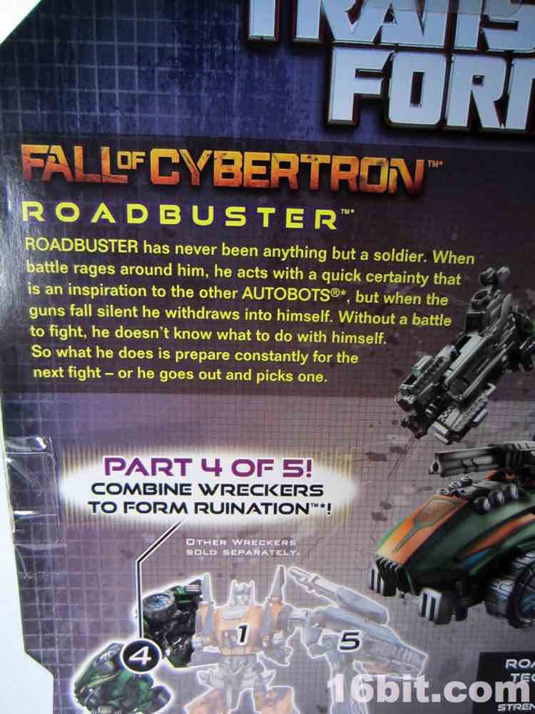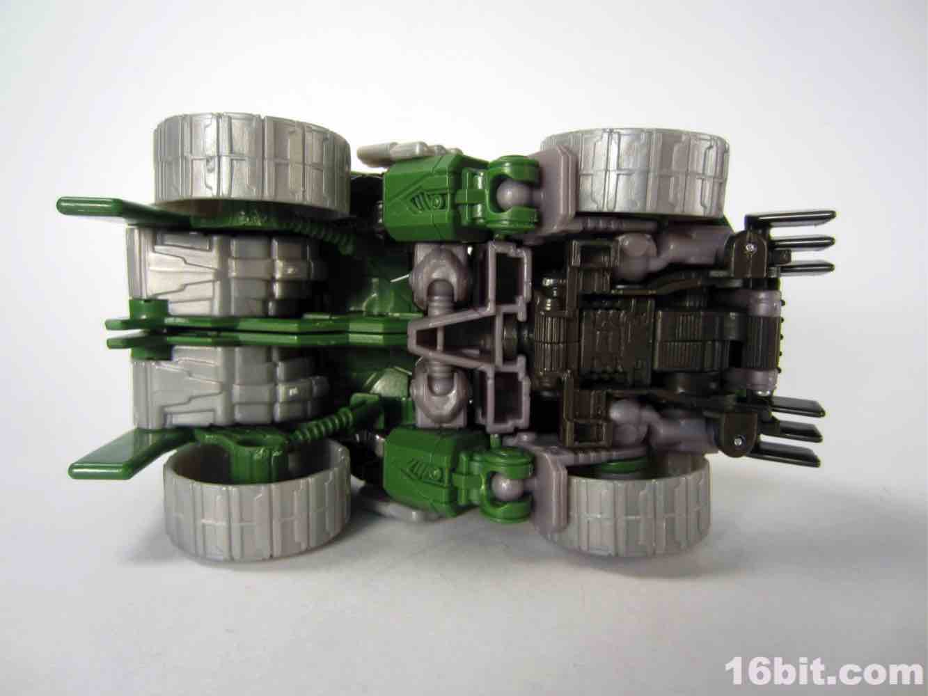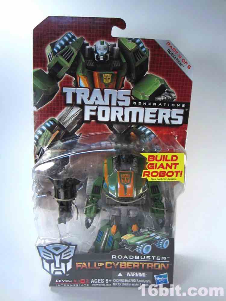 One of the amazing and irritating things about Roadbuster and his comrades are that these cost the same as previously released toys but seem to have more paint and more guns. I just don't get how that works - his body was previously sold as three different flavors of Swindle, all of which share this piece's flaws and charm. Not only can he be a car of some sort, but the hulking robot can also change in to a leg or an arm for the giant robot Xaaron Ruination. Molded mostly in green and grey, it's a wonderful little robot with bright orange bringing him to life.