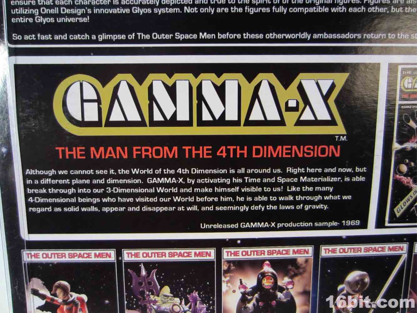 Four Horsemen Outer Space Men Infinity Edition Gamma X Action FigureBack in May of 2010, I was blown away when I saw the announcement that not only would I be getting some Outer Space Men figures, but they'd be 3 3/4-inch scale, Glyos compatible, fully-poseable, and made by the Four Horsemen. That first batch was glorious - each figure was well made, freely able to stand or sit and everything just plain worked. Figures could sit in vehicles, the glow-in-the-dark figure glowed quite well, and they were a very reasonable $10 each - despite being super-low-run figures. A few years on, edition sizes of 200 struggled to sell out and by the time we got to Gamma X, it feels we just limped over the finish line to update the classic Mel Birnkrant action figure property. Some were good - Colossus Rex, for example, was an exceptional figure and arguably the apex of what Glyos compatibility has given us - but as the line went on, each year we saw new problems. Figures may tumble off your desk due to weak hip joints, or they couldn't quite sit, or in the case of Gamma X... I've got a lot of complaints.