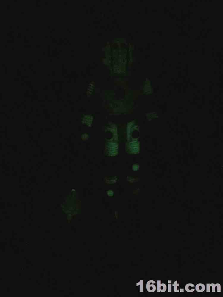 The 2010 quartet sat fine, were cheap, and looked cool. Heck, the glowing plastic Metamorpho still glows great four years later - but the brand-new Gamma X barely glows now. The sculpt is good, and the silver paint is just fine. These figures came out of the same factory that does Glyos, Mordles, OMFG, and others which are some of the most stunningly bright glow-in-the-dark figures in the business. So why does this one shine worse than various glowing toys I have that are nearly as old as I am?