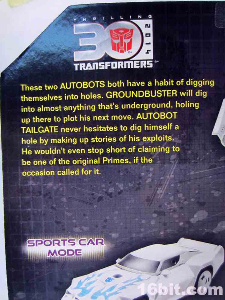 It's too bad that Transformers: More Than Meets The Eye from IDW isn't more popular - it's awesome, and it makes toys you never gave a second thought to into important, fun characters. The Autobot Tailgate with Groundbuster set owes its popularity to the massive cult following for that series (and "classic" robots in general). This time, he's based largely on the comic design where the character is a sort of a Rip van Winkle type in a relationship with Cyclonus - another similarly old robot.