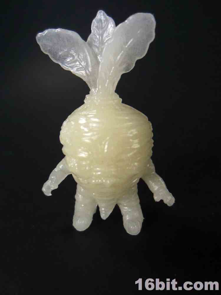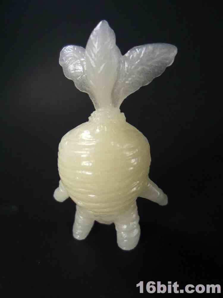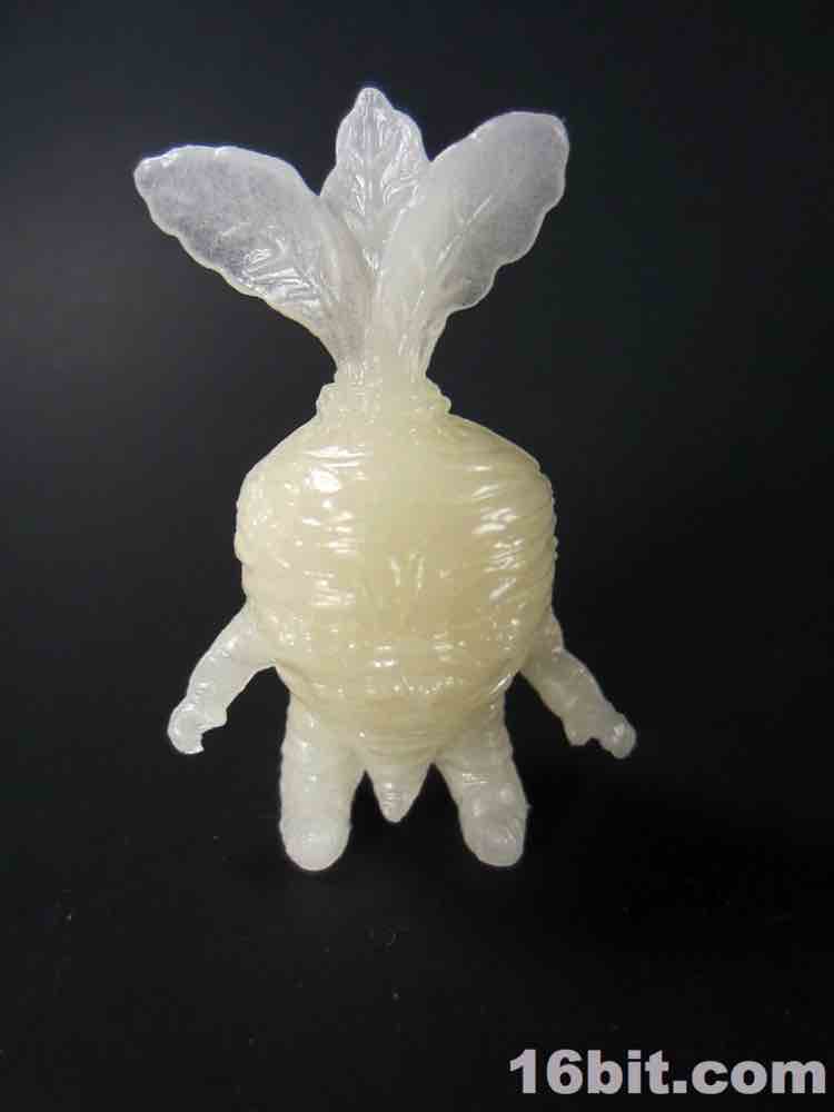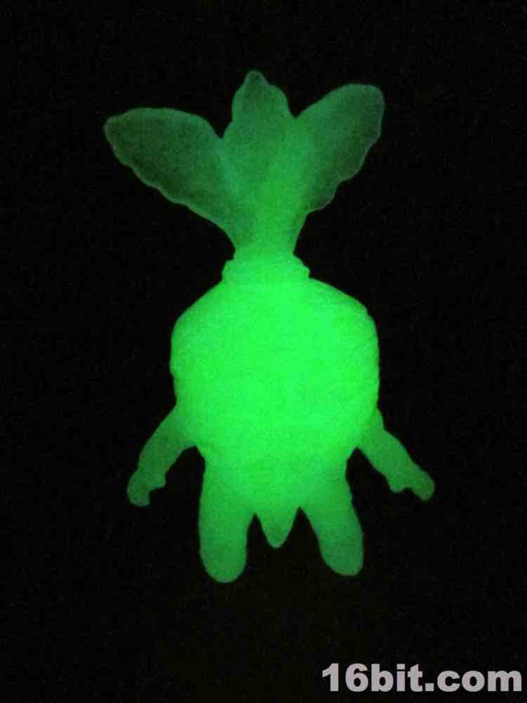 At about 1 4/5-inches tall, this little guy glows brightly and stands well. I was excited about the design from the get-go, and anyone who collects these things is probably aware that the glow-in-the-dark plastic coming out of the OTMFG/Onell Design factory is about as good as anyone can buy these days. Unfortunately, the milky-white color seems to do such a good job absorbing the light, it makes it hard to see the fine wrinkles, tongue, and other design elements carved in the figure's face.