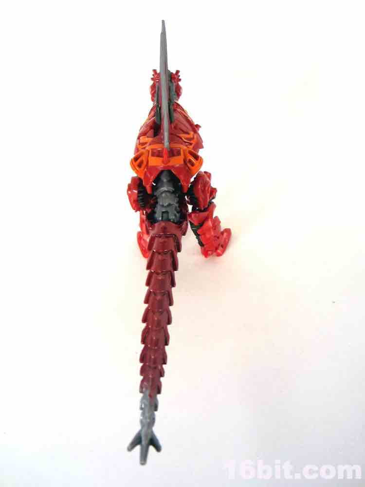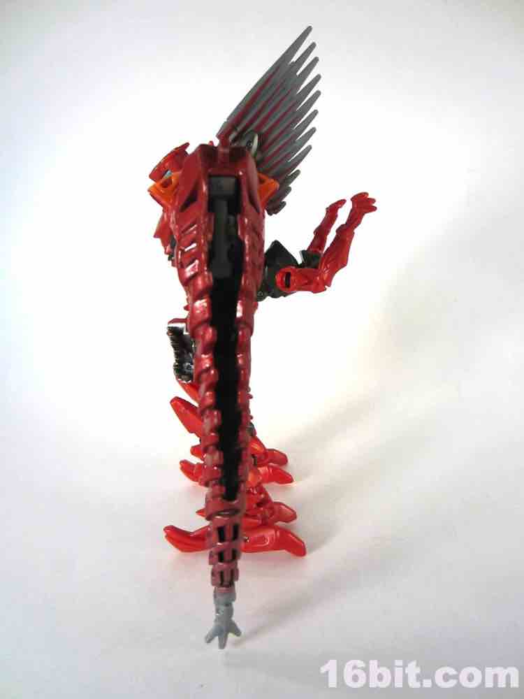Transformation is a snap - there are lots of moving parts in the legs, and the head pops out with a bit of a struggle. The fin splits in two and becomes a swell backpack, while his only fist is in the head of the dinosaur. The "spear" arm is nothing too special, but the clever foot transformation gives him some of the most useful toy articulation in the line.