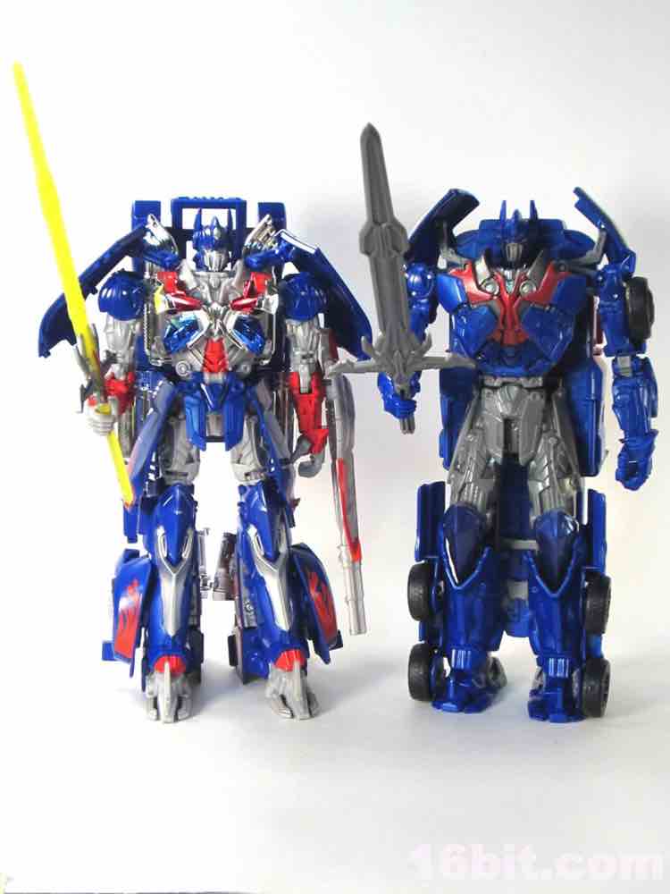Item No.: Asst. A6143 No. A6144 Manufacturer:Hasbro Includes:Sword Action Feature:Transforms from truck to robot in 3 seconds Retail:$19.99 Availability: May 2014 Other: Same size as Leader-class robot, less than half the price