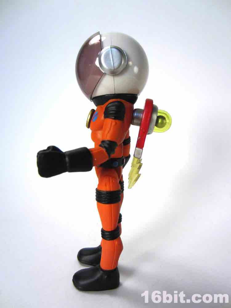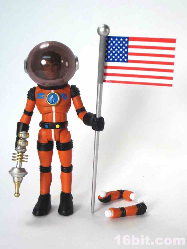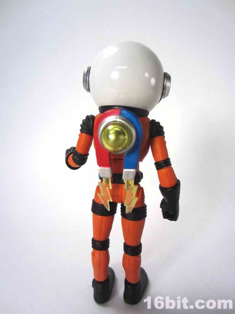 While Terra Firma was revealed to the world first, Jack Asteroid worked out well as a variation on the theme. For all intents and purposes, Mr. Asteroid is the 21st Century Major Matt Mason stand-on. The original Outer Space Men were made by Colorforms to be compatible with Mattel's line, and since Mattel isn't doing anything with Major Matt Mason (and indeed may never) it's reasonable that this Space Race toy line needed its token human white male astronaut. The orange-suited figure is an insanely clever reuse of Terra Firma's helmet and accessories with Metamorpho's body and a new head. One of the big selling points of figures (like this one) that use the Glyos system is that you can swap around parts, but it seems this is mostly used for customization purposes or color-swaps. With Jack Asteroid, they're giving us what amounts to a completely new figure just by using paint and existing accessories - kudos.