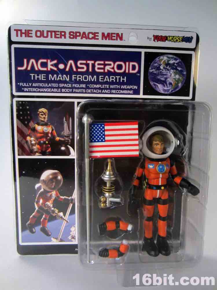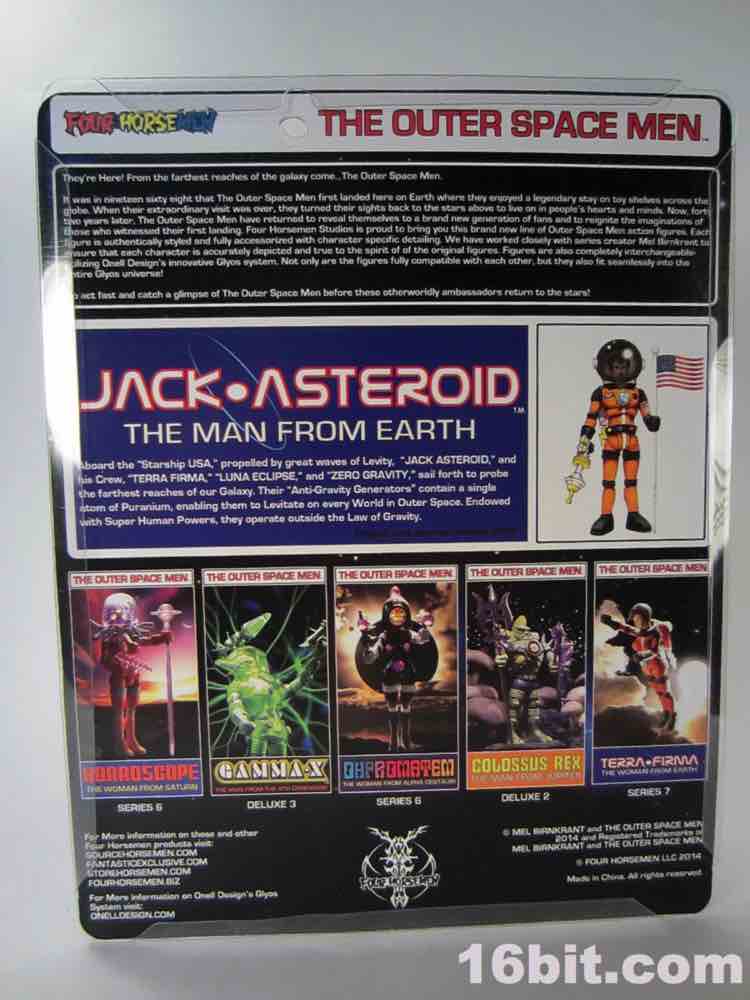 With 12 points of articulation - 10 of which really matter - this is a pretty good figure and a nifty update (and probable finale) to the Outer Space Men legacy - odds are this tiny rerelease was the comeback, which is great for people like me who missed the 1960s. Sure, it'd have been nice to see a figure like this done with Power Lords-style ball joints, but I'm rather happy we got any Jack Asteroid than none at all. Action figures that exist for their own sake, and not to tie in to an existing movie, comic, TV show, or video game are a real rarity so this line (and indeed a lot of what the Horsemen have to offer) are sort of a toy evolutionary dead-end - odds are there won't be many new fans down the road, there won't be revivals later, but we'll always have these to treasure. Unless we sell them, which if you look at eBay doesn't seem to happen too often.