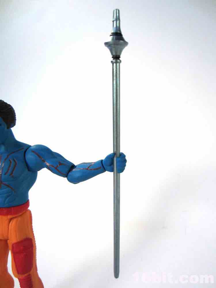 With a silver Power Staff bedecked with black rings and an unpainted black rifle, it's a decently accessorized figure. My Adam Power staff has no black rings, so the two appear slightly different. The foot holes are similarly sized to Star Wars (1995-present) but he has no problems standing - those are some stiff joints. In my many travels and discussions it seems fans have been less than fully thrilled with the build-up to this line, but after a prolonged wait I can confirm that the final product is indeed impressive and that this is a wonderful figure. Get it if you can - especially if you have the club discount. I don't know if I have the energy to buy too many more of this mold in various colors, but it's easily one of the best versions of this design so far.