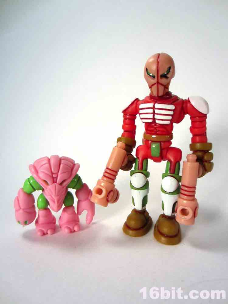 Unlike many of the other Onell Design figures, the Crayboth have never had any alternate heads or tooling - the same, crab-like, Battle Beasts-ish build continues production in new colors fairly regularly after a hiatus a while back. It's rare that a new series comes without one of the little guys, each of which are a little bit over an inch and change. I'm curious if we'll ever see larger versions of them or perhaps new heads or arms, but at this point the tradition of the right hand looking like the arm of Samus Aran or Mega Man seems to be unbreakable - besides, it'd just be weird to tweak it now. The left hand continues to be a three-fingered claw of sorts, unable to hold anything in particular but looking menacing all the same.