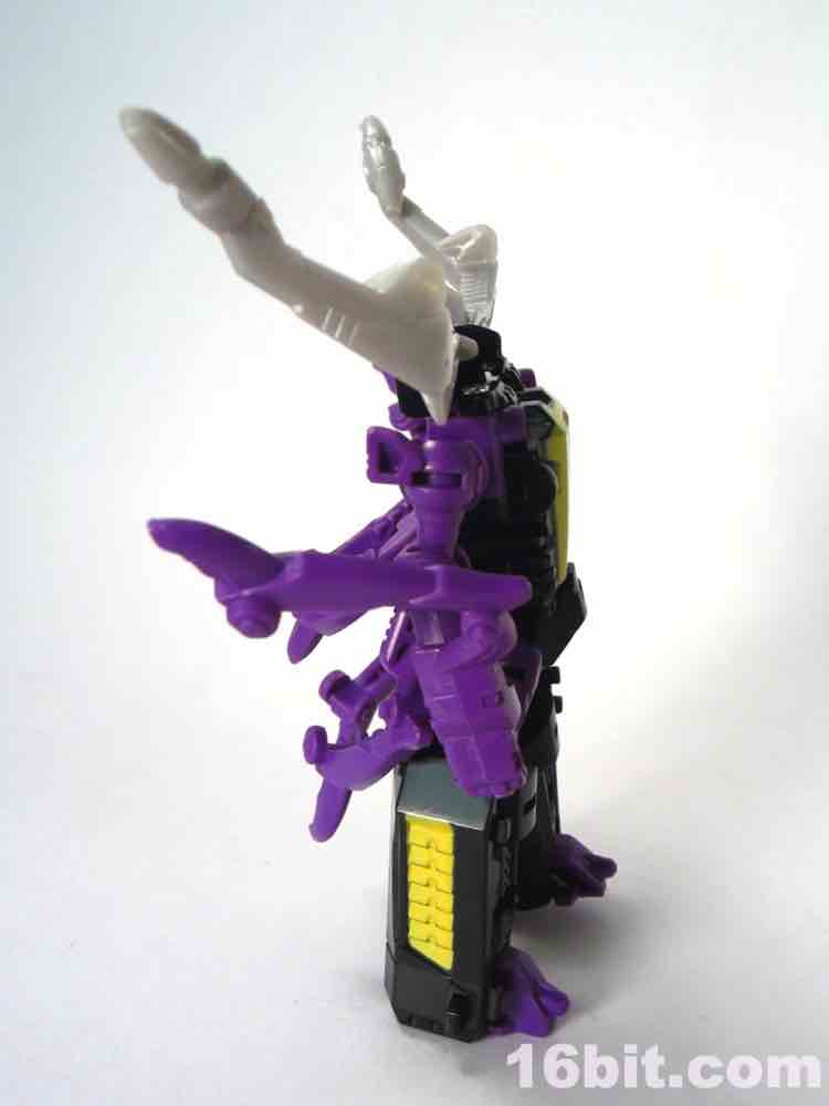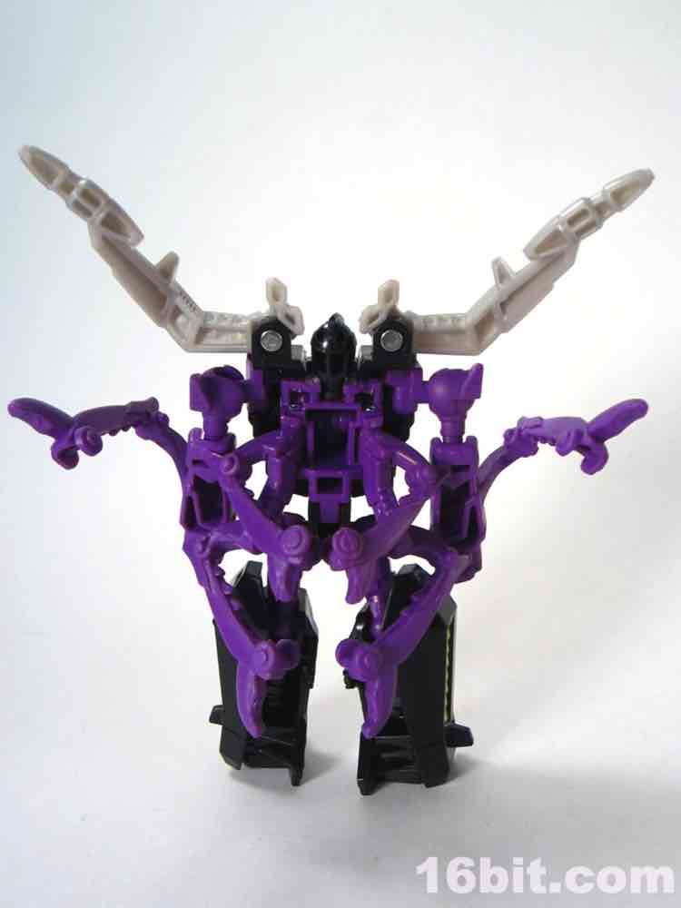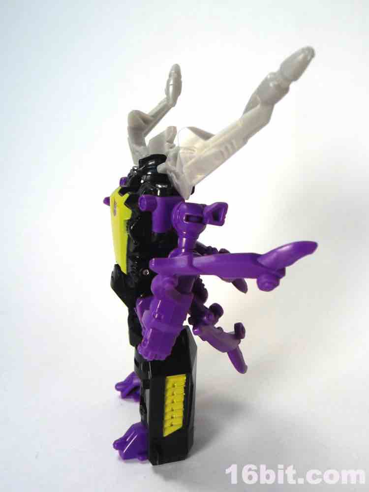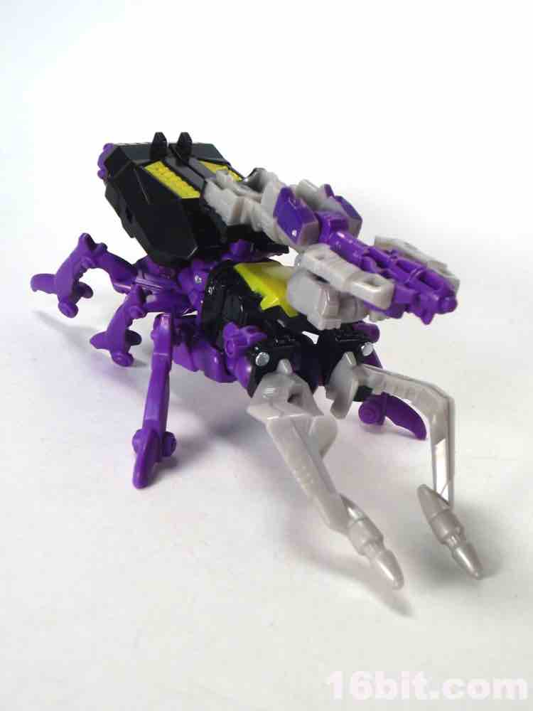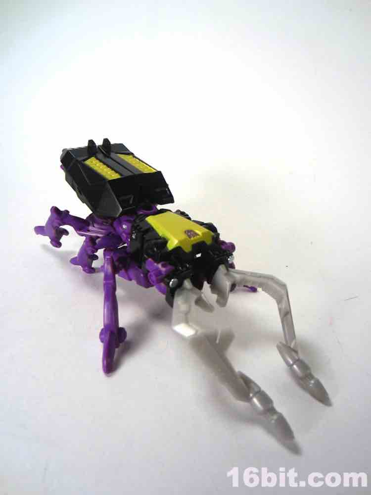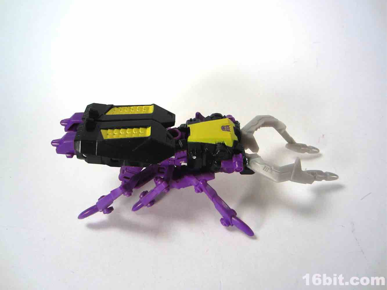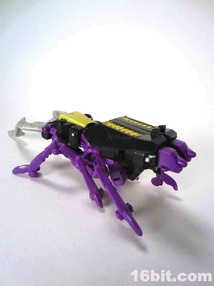 The stag beetle mode measures nearly 5-inches long and basically looks like a robot bug. There's gold, grey, purple, and black without much of a head. There's a void of where a head should go in the area with the mandibles, but it more or less looks OK. Since I assume most collectors will display him in robot mode, this won't matter much. I would have preferred a bit more in this area.