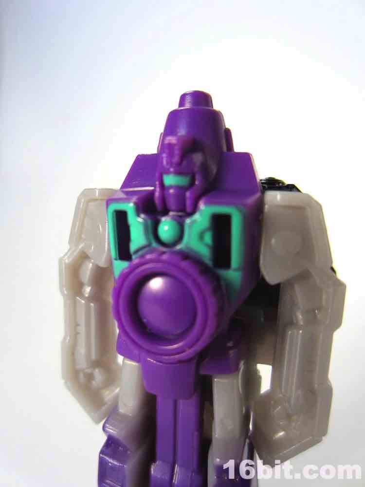 The robot is pretty good, coming in smaller than his Legends contemporaries unless you count the massive mandibles. he has a tiny head, which makes the toy feel considerably smaller than the original. 9 points of articulation allow him considerable movement and he has no problem holding Reflector in gun mode in either hand - and what a gun it is! But more on that later. The sculpting is pretty good and the detail isn't bad, but the smaller head and tiny Decepticon shield on his chest feel like they could have been improved on in some way. It gives the illusion that this is a much smaller toy, and at least with the logo that's something Reprolabels will no doubt fix in the coming months. The head sculpt itself is fairly true to the cartoons, toys, and comics but lacks any red paint on his visor - it's just silver, like the original plaything. This toy will look good on your "classic" Decepticon shelf and feels sized appropriately overall, it's just that the head issue - complete with larger hands - doesn't do much to relate just how decent this toy is. It's fun, but it feels like it could have used some more tweaking on the way to the toy store shelves.