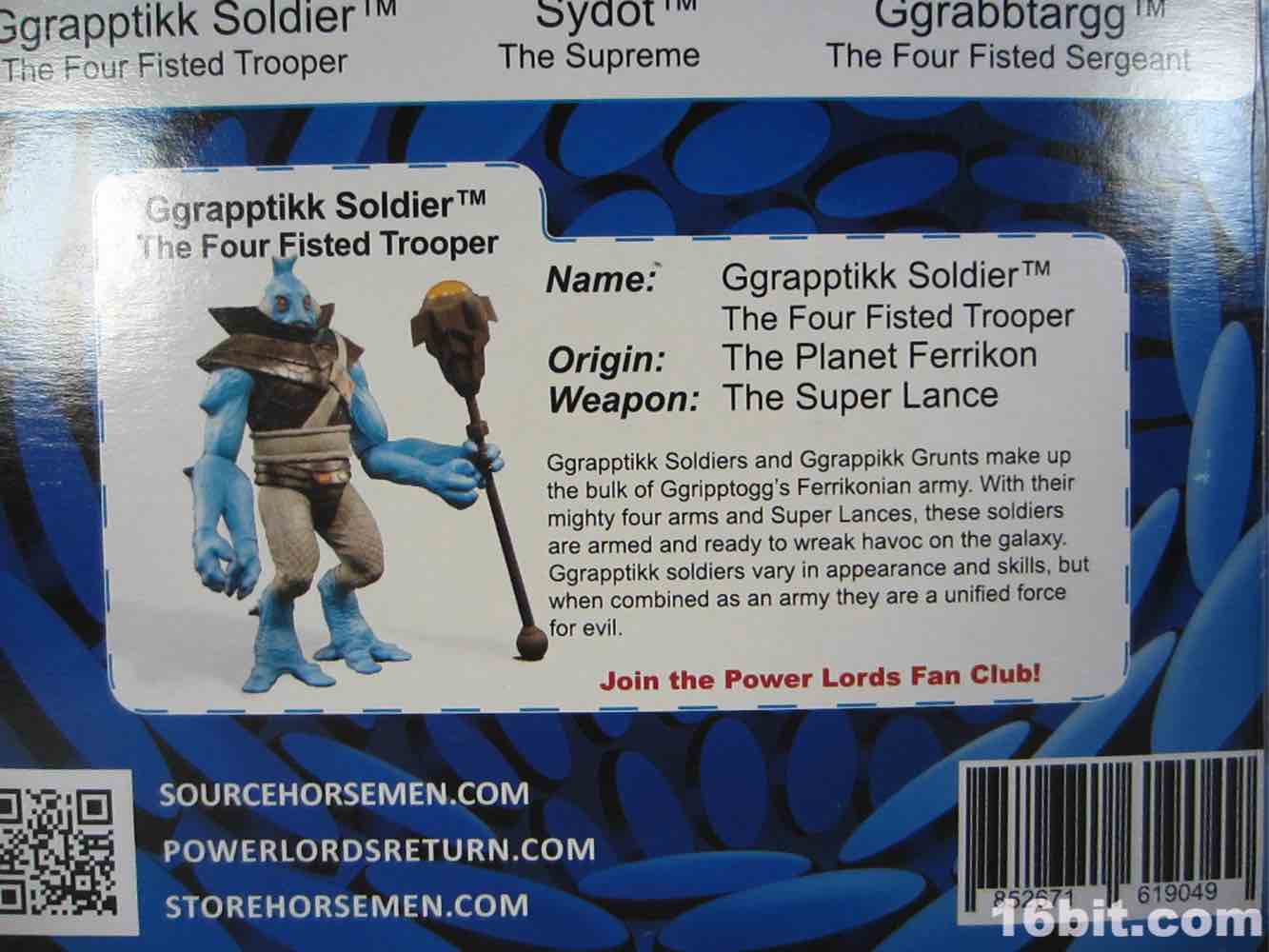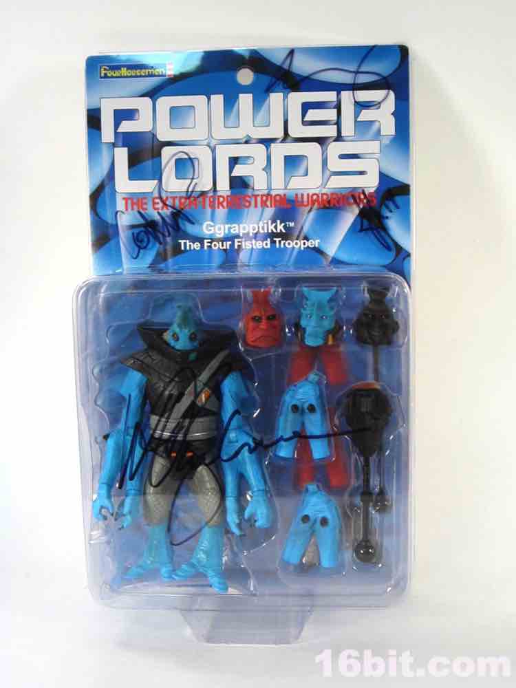 Originally teased to fans as "Ultimate Edition Barlowe Tribute Ggripptogg figure" in a solicitation for the $100 Volcan Rock level of the Power Lords Fan Club, the plussed-up signed figure turned out to be the blue Ggrapptikk. He's a very low run painted figure, exclusive to club members. He was $40 alone, or part of the $100 level - which was about $40 above the next membership level, but signatures were exclusive to the higher club level. He's twice the price of the regular red Ggripptogg, but you get three extra heads, four extra arms, an extra skirt, and an extra stick. Do you need these parts? Well, no, but it's a nice option to have. The biggest complaint about this figure that I have is that he's a "trooper" and yet army-building him is prohibitive due to price and the low edition size. Ah well. At least it's pretty spectacular!