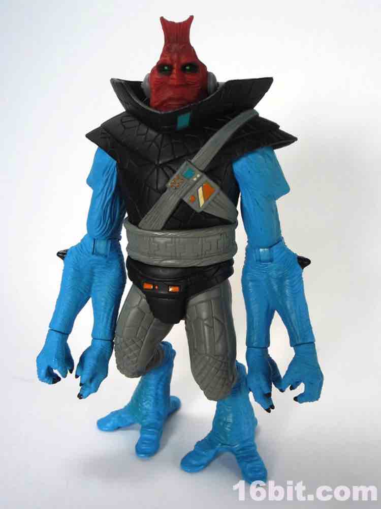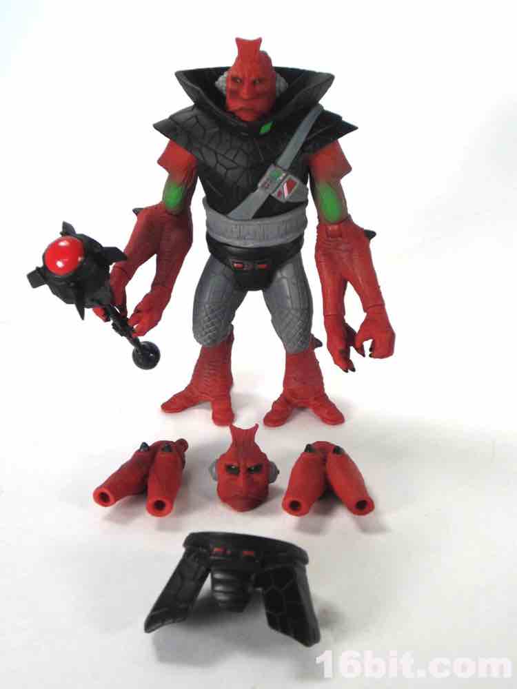This beefy fellow stands about 5 1/8-inches tall, putting it in line with many of the other figures of the 1980s and keeping in scale to the likes of Outer Space Men and Star Wars. The various claws, horns, and toes more or less match the original Ggripptogg, which comes courtesy of the retooled arms - you see, the position of the hands and the horns near the elbows more closely match that original toy. If you prefer the arms used previously on the Ggrapptikk Grunts and their descendants, they're here too - you get two horns on each elbow and a different pose for the hands that is less claw-like. I prefer these new arms - claws with hands on the end are some freaky weird stuff.