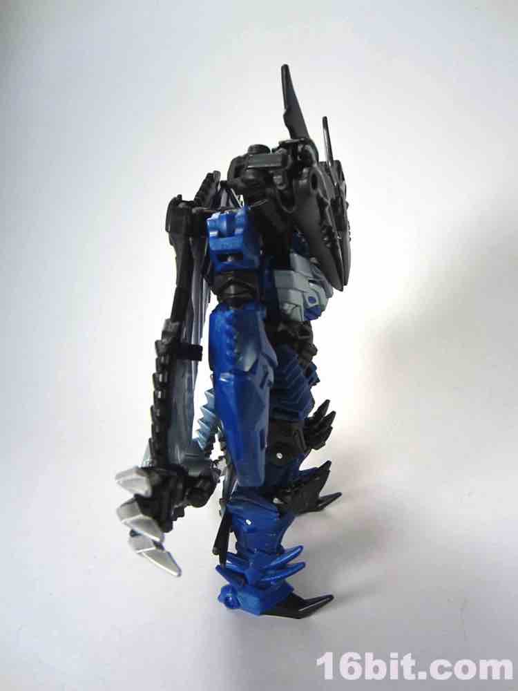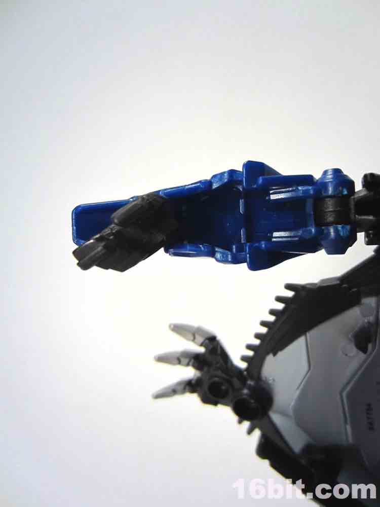 Big Strafe is nice - the transformation is incredibly simple for a "Generations" toy and I like that. The box says 10 steps, which is probably something of an exaggeration - the black, blue, and silver robot has legs that flip over, arms that attach to wings, and heads you need to move around - and that's really all there is to the transformation. It's incredibly easy and, again, awesome. The crossbow fits in either hand or a hole in the back, as do the swords which can fit in hands or holes on the wings. It's very nicely armed for a modern toy, but the rocket on my sample doesn't do much to clear the launcher.