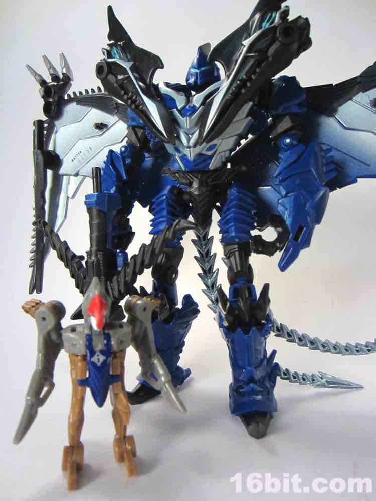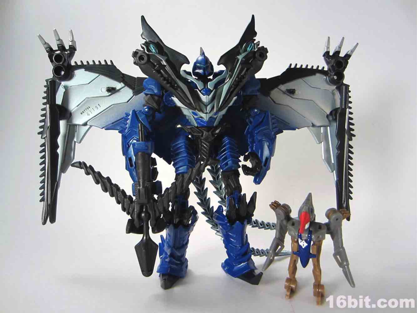 Item No.: No. A7754 Manufacturer:Hasbro Includes:2 swords, projectile, crossbow, Mini-Con "Strafe" Action Feature:Transforms from Pteranodon (sure) to robot Retail:$14.99 Availability: May 2014 Other: Thrilling 30 #26 of 30