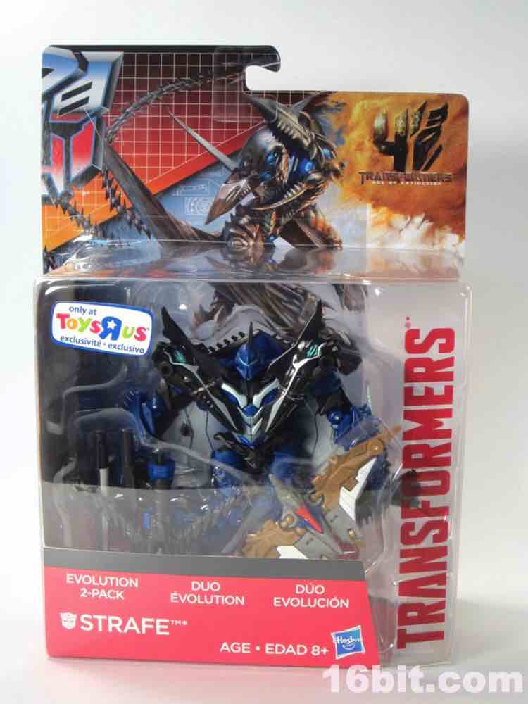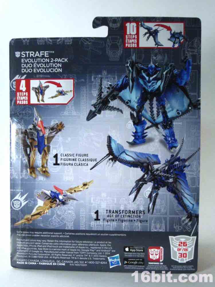 The "evolution" nature of Strafe is a little strange to digest, because the original Dinobot was named Swoop, with other similar prehistoric flying creatures having names like Terranotron, Brimstone, Terrorsaur, and Skydive - so it's not so much an "evolution" as it is a set of similar creatures. The Mini-Con here "Strafe" is actually Dark of the Moon Rav, which was an alt channel/emerging channel exclusive - this is what used to be called "Market Six" but that's not a thing anymore since Kay-Bee and Kmart are no longer part of a top 5, but I digress. This is toy nerd stuff. Also toy nerd stuff: the side of the packaging for this set shows G1 Strafe, a Technobot, who is completely unrelated to the Dinobots as toys go. (In the cartoon, Grimlock was involved in their origin. Again, I digress.) The point is the Strafe set here is $15, and single Strafe at the time was normally $15 except at Walmart which makes this a pretty solid deal.
