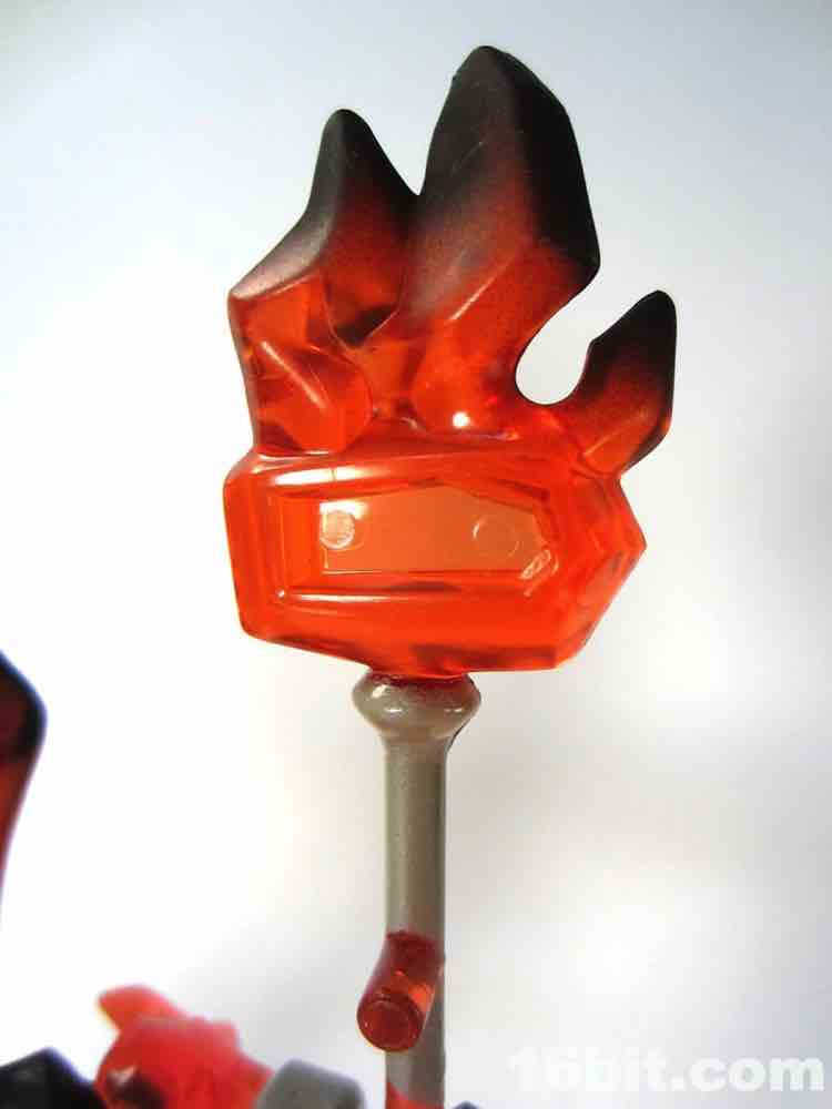 The black plastic Grim Skull has about 14 points of articulation by default - all of which are ball joints. Every one. It's a crying shame Hasbro didn't adapt this structure for Star Wars, G.I. Joe, or even Marvel - the range of movement for the price was some of the best money could buy. Due to the unique construction system, you could swap out bone forearms or shins for flame ones, or really anything from any other figure in the line. Do you want a mummy with a guitar and Chuck Taylor sneakers? It's doable. My default form for Grim Skull is usually a winged, flame eyeball warrior with a pale clear purple sword and giant flame staff. I know it's not very original but hey, I love it.