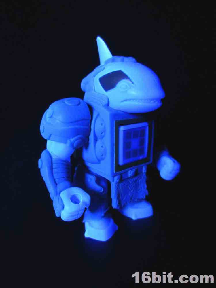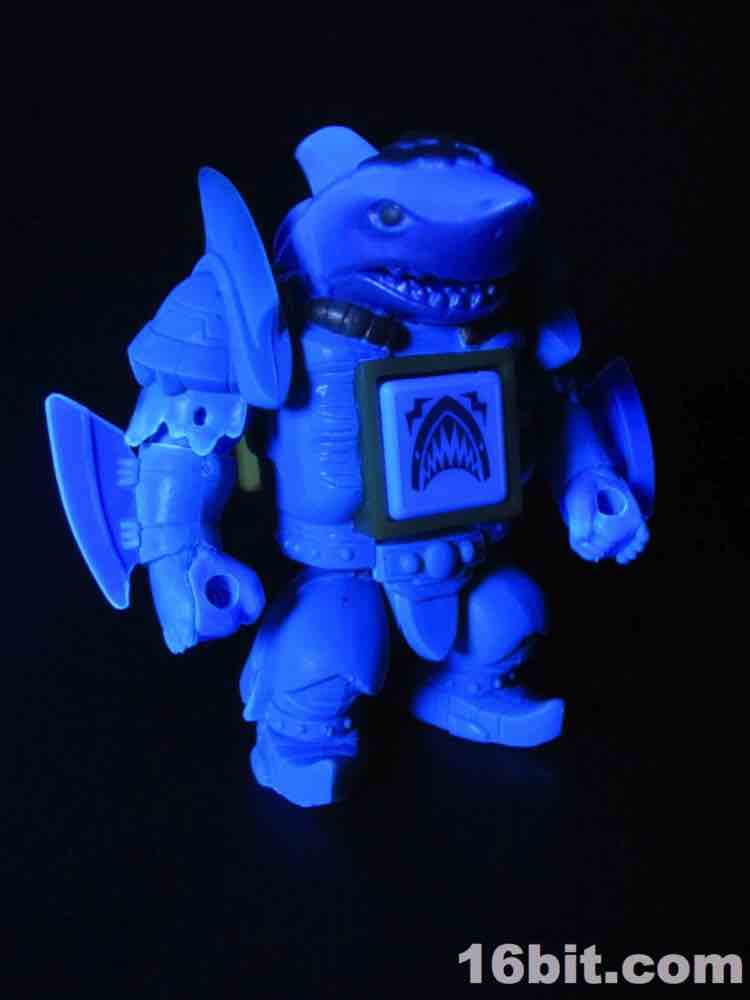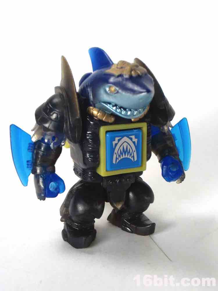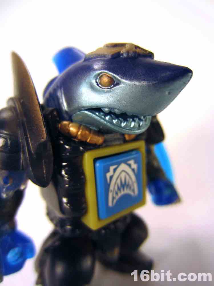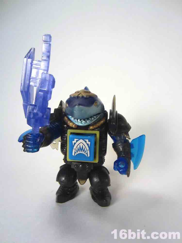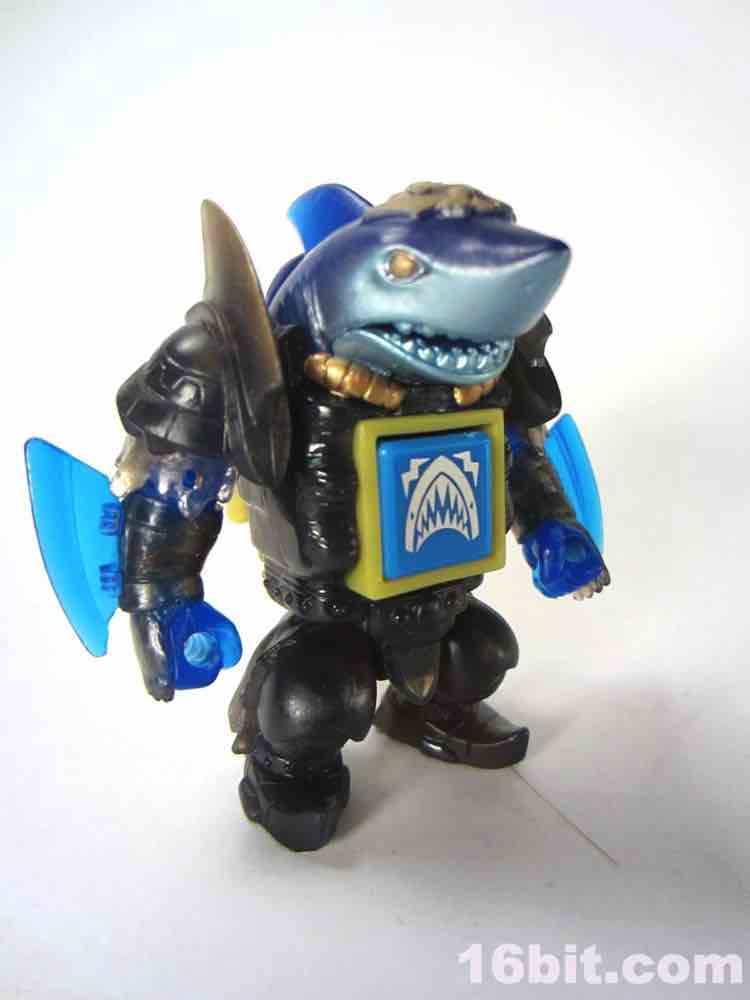 The Sea Tribe's Olrich was that character's only repaint save for the standard black version. It's OK. While the others have little details that just bring them so much life, Olrich has a black suit of armor, purple skin, and some gold around his eyes while the eyes remain unpainted. Less was done here, and it shows - you get a swell clear purple dorsal fin, and the armor looks good, but it's decidedly un-orca-like in how he sits on your desk. Blackfish, he is not.
