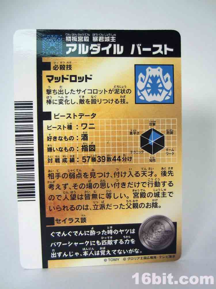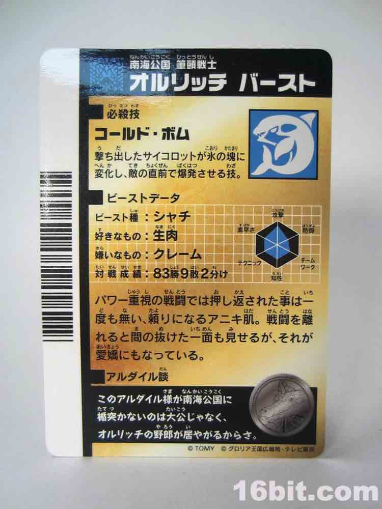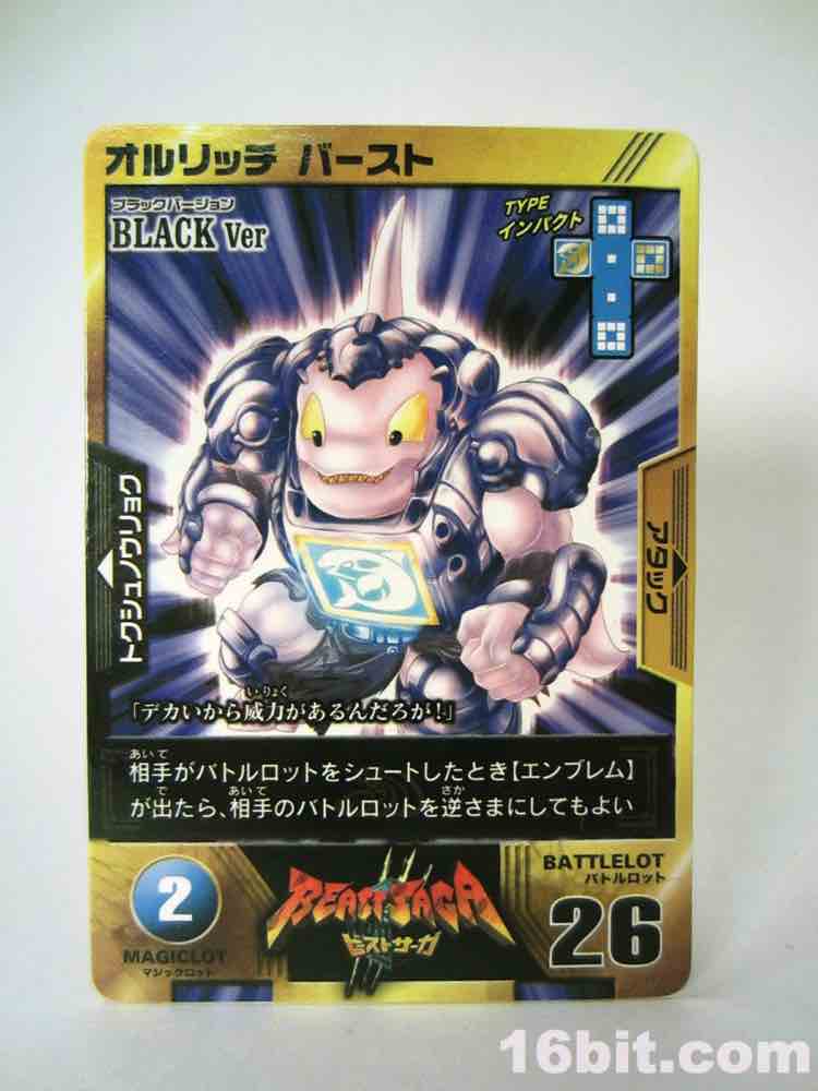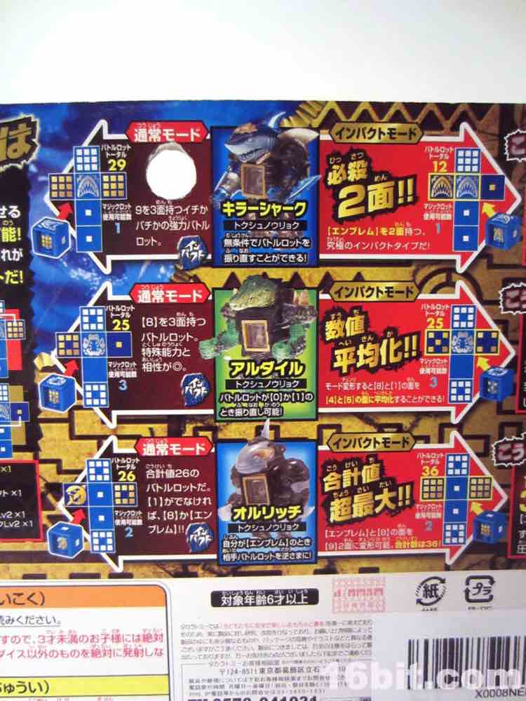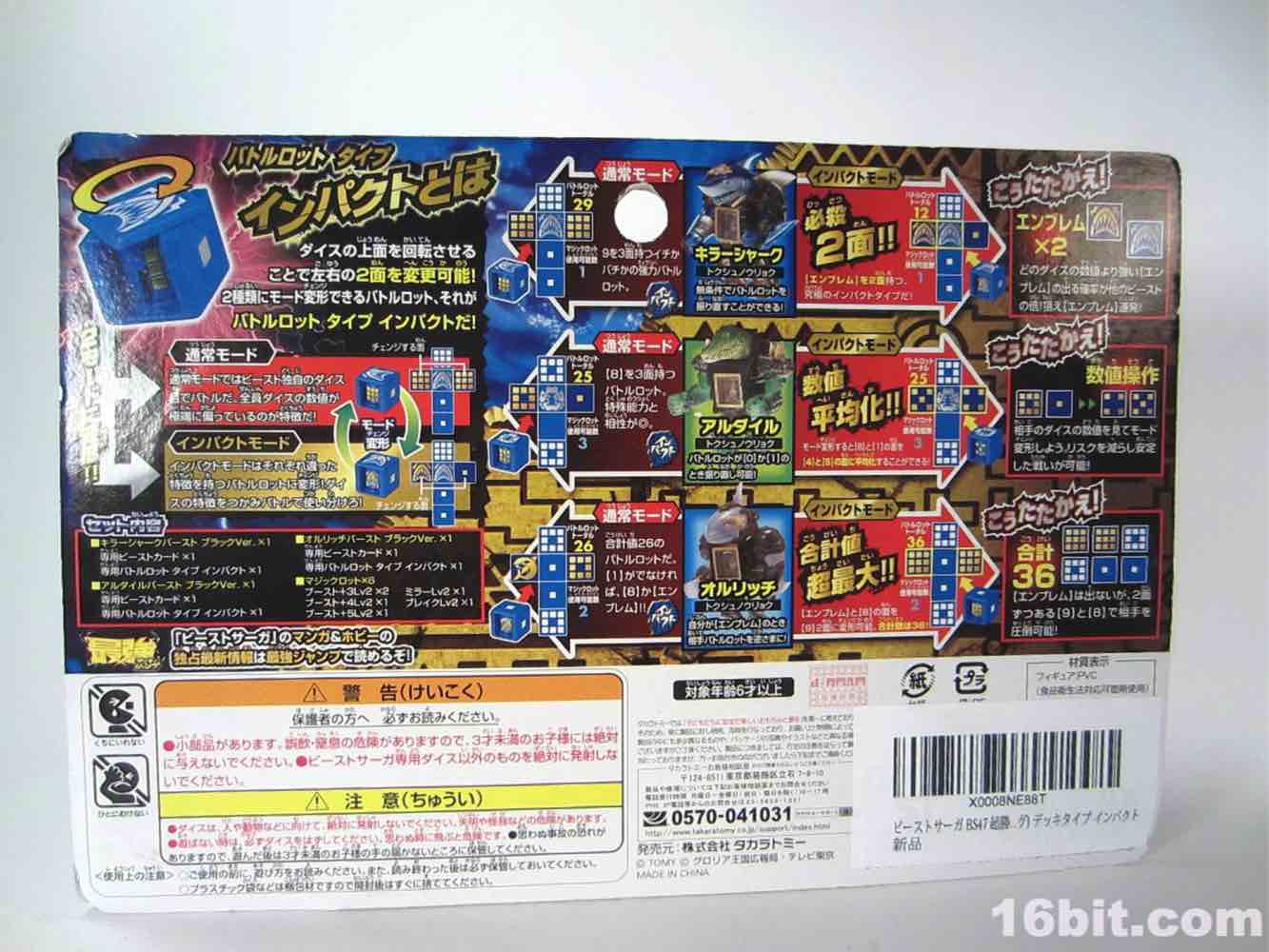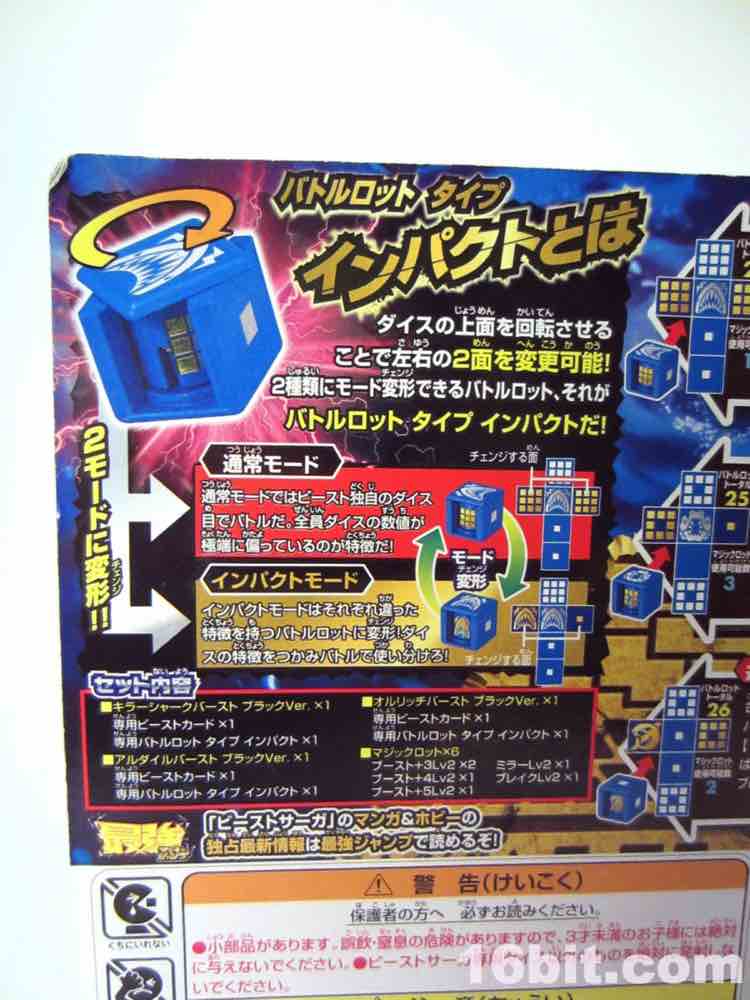 Item No.: BS-47 Manufacturer:Takara-Tomy Includes:3 trading cards, 9 dice Action Feature:Dice launch out of stomach Retail:2,160 yen ($20-$30 at importers) Availability: Mid 2013 Other: Not Bad