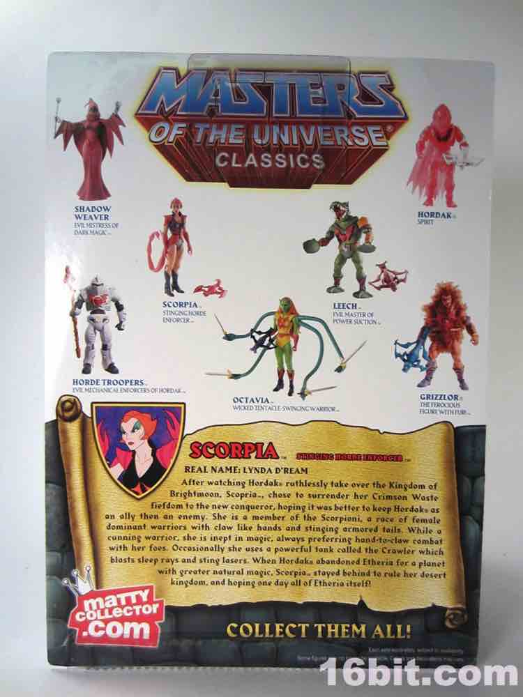 You generally can't go wrong with the Horde when it comes to Masters of the Universe Classics. Between the original toys, the original concepts, and unmade cartoon characters there's too many good ideas. Scorpia comes from the Filmation Princess of Power sector and I don't really remember much of anything about her, not having seen many episodes recently outside what I saw on Qubo late at night. Of course, a truly neat action figure doesn't need a cartoon to be awesome - Scorpia stands on her own merits, and on her own two feet.