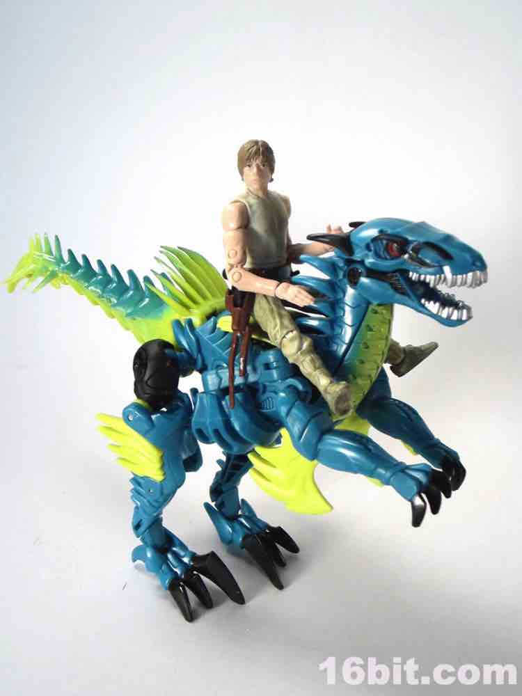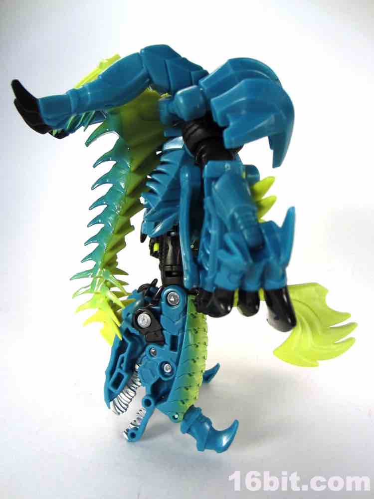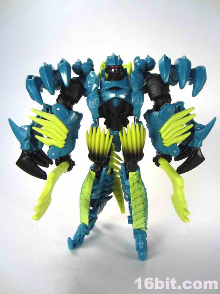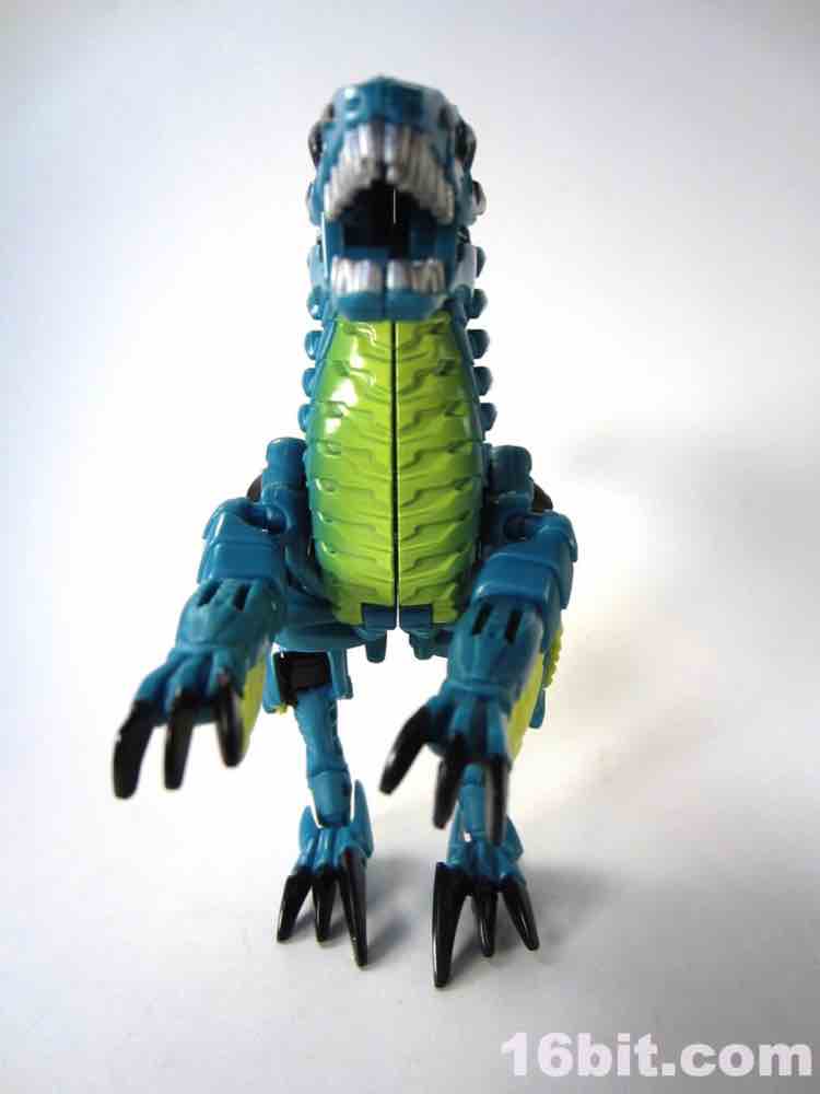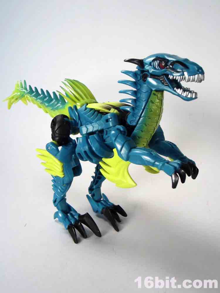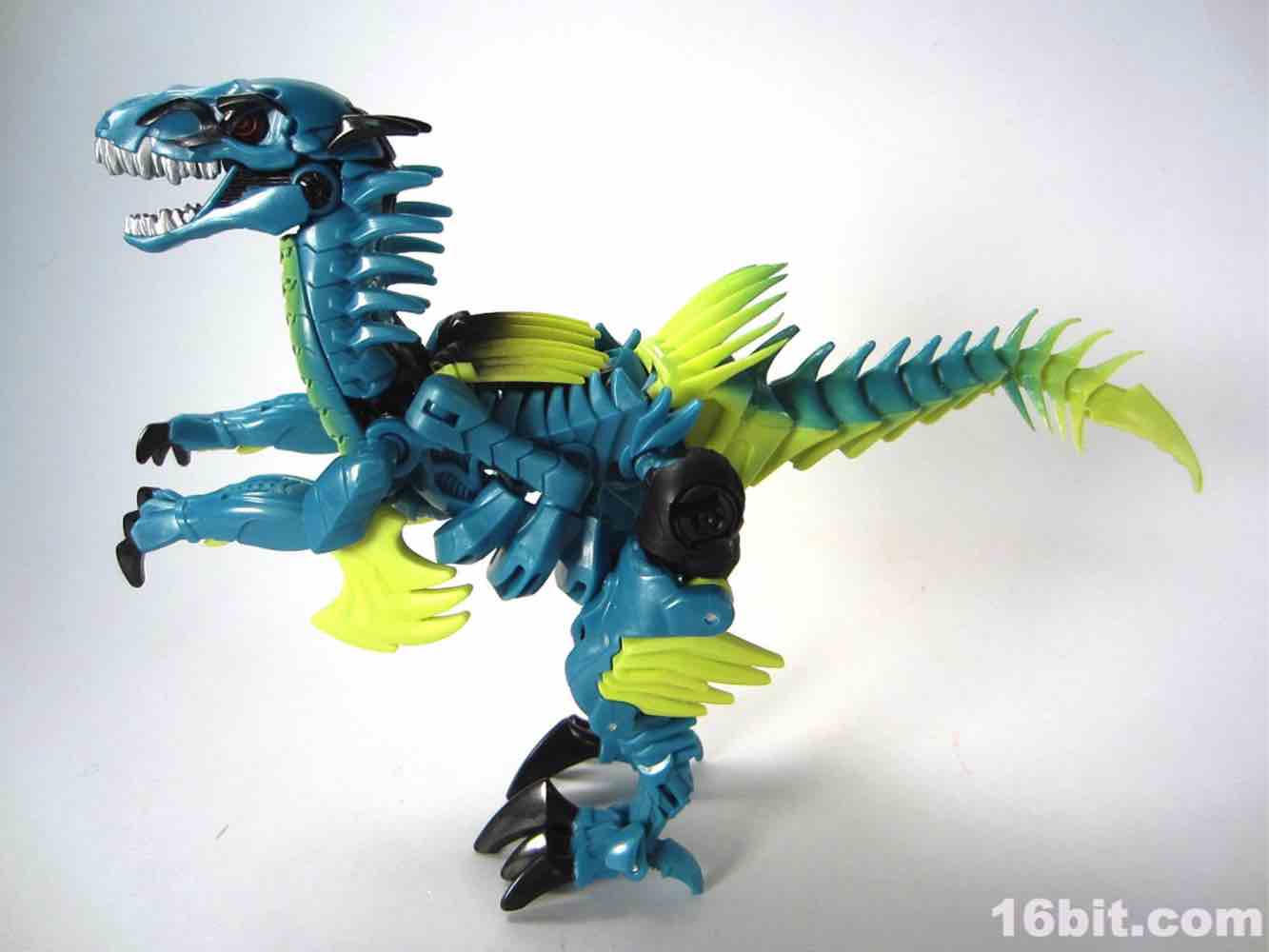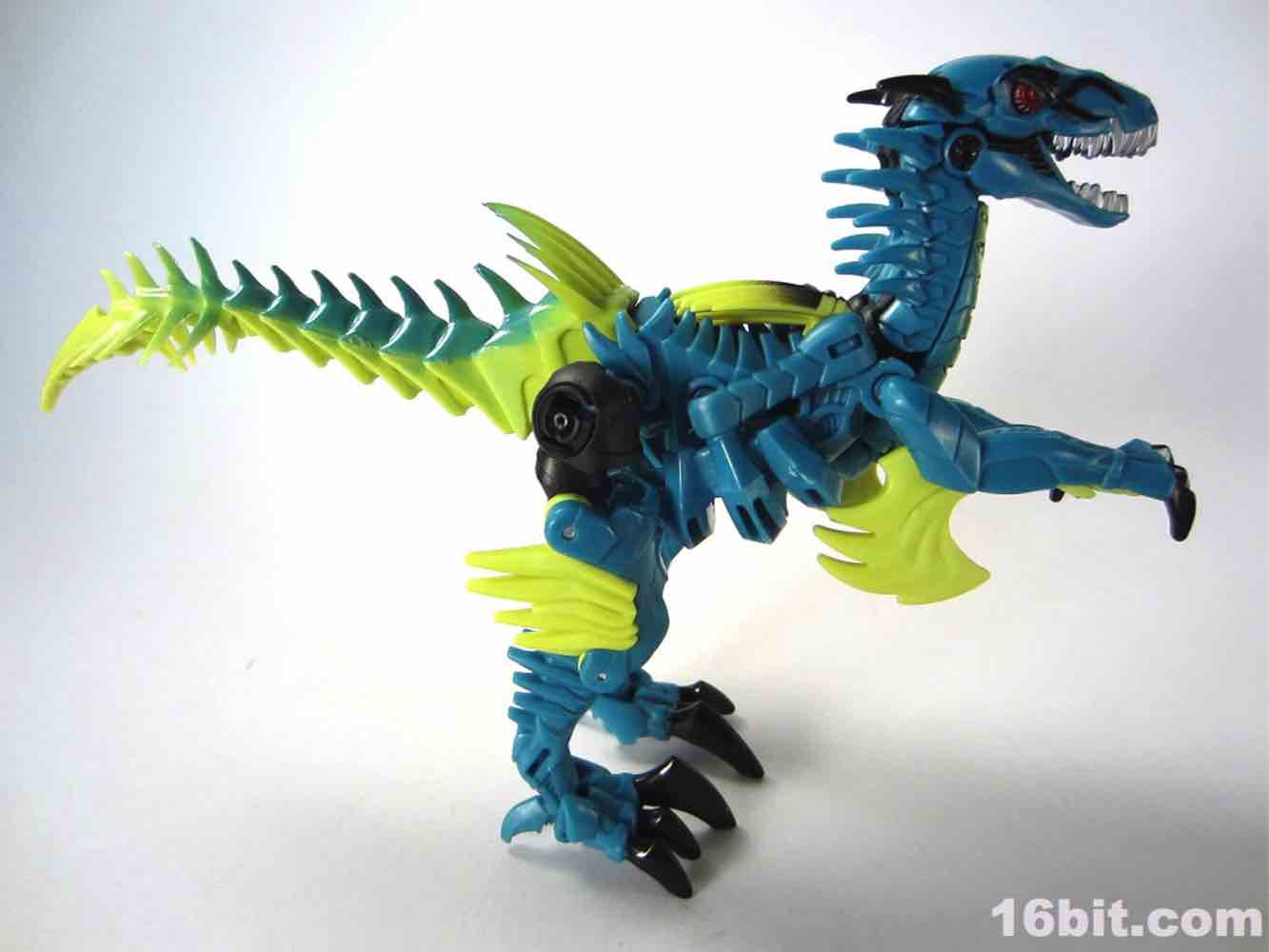I got this toy specifically because the dinosaur appealed to me - its Transformers-ness is secondary, the design is just so neat and bright and mean. Weird mutant neon dinosaurs are probably some of my most favorite things, so the robot.shtmlect of this toy is just a nice bonus. I'd suggest getting it if and only if you are hopelessly in love with the raptor mode, which I am, and/or if it's on sale. Target had it down to ten bones which was cheap enough for me to leap at it, and if you can find it for cheaper than that he might be worth snagging just to use the twin green hatchets with your other 5mm-compatible Transformers.