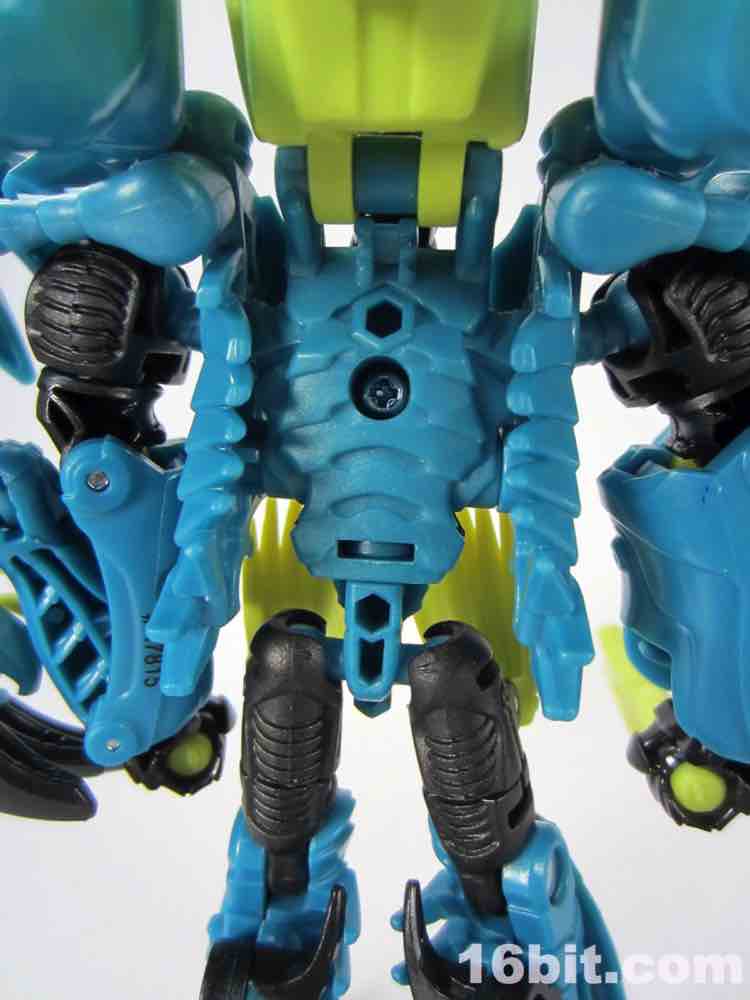 Transformation is one of the more annoying toys from this line - it's actually possible for parts to pop off. The little green spines are held on with loose clips in spots, so you can remove those. The arms pop off, but not easily. It's not quite the brick house that some of the other toys are, but it's still quite good. Peeling the hatchets out from under the dinosaur arms feels like something could tear some day, but for now they come out without too much effort. Fidgeting everything in place is, like most "beast" Transformers, a mix of the obvious and a few panels are placed in locations simply because that's what the instructions say. It's not obvious, and the design doesn't necessarily make sense in spots. Why does he have two giant three-clawed hands over his shoulders? Just because?