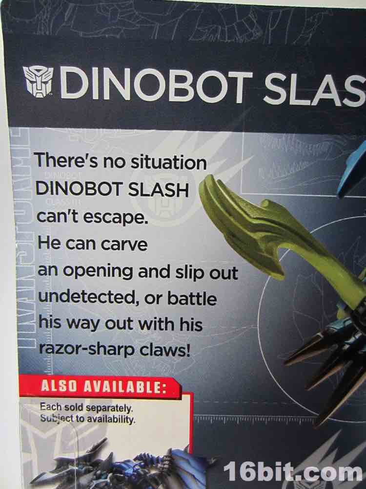 While this is the first toy with the name Dinobot Slash, I'm pretty sure that Dinobot slash has existed for years. One of the first things that I was assaulted with when coming online to see how the Transformers fans live was that there was a big subset of stories about Starscream and Megatron which have been referred to as "slash" for years.