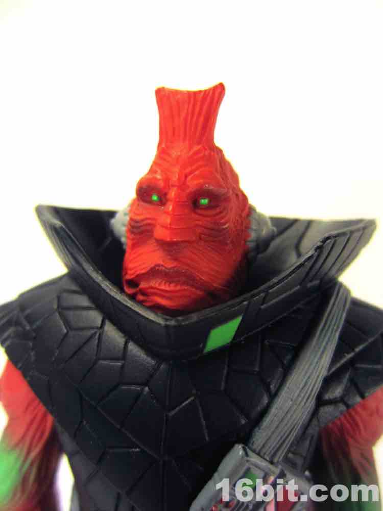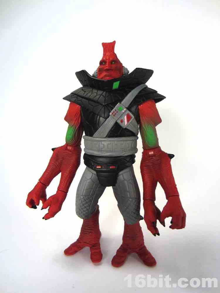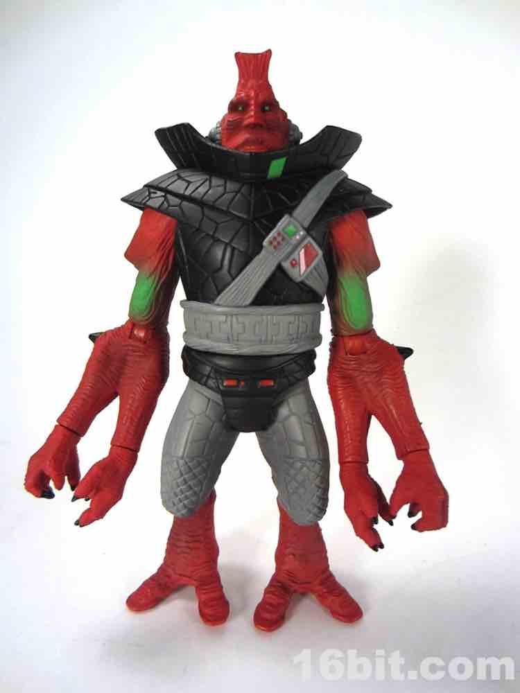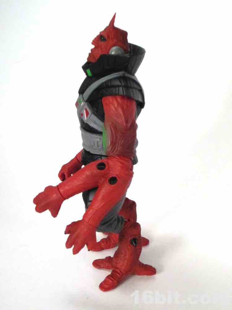 The third big change? This Ggripptogg is slathered in paint. The body is made of red, black, and grey plastic and it's covered in red, black, and grey paint. While this may seem redundant, let me tell you the effect is always fantastic - the first Outer Space Men from the Four Horsemen were made this way and it gave the figures a rich, delightful look. Bare plastic looks acceptable, white plastic painted up usually looks good, but red painted over red? Gorgeous. The way the light bounces off the paint is quite pleasing, even in a dark room the textures seem to pop a little better and the black looks more lively and less like a detail-eating void.