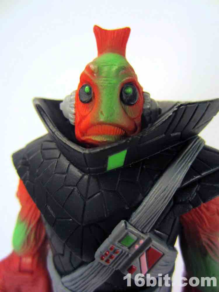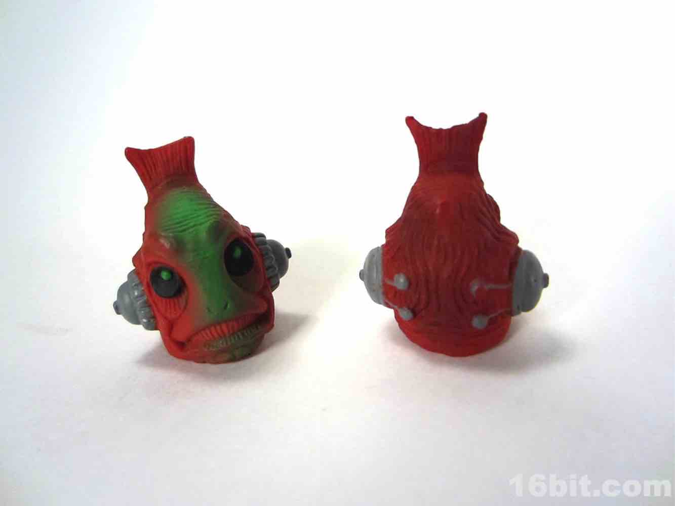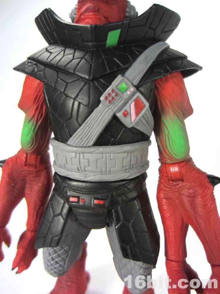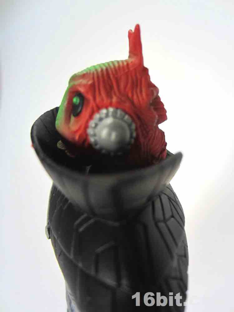 The head is the next major change - at first glance, it looks like the head used for the Barlowe Ggripptogg. A second face is sculpted on the back, with huge black eyes and a sort of fishy complexion and strange, narrow teeth. It's a much friendlier look and adds a lot of personality to the toy. This head is not exclusive to this release, a blue version is included with the Ggrapptikk Soldier. The head has some green on it - as do the forearms - and it adds a lot of personality to the figure. It made me think of a lot of the current crop of customized Kaiju toys but the green also appears on the original figure.