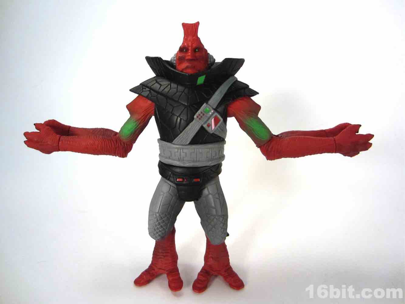 There are three big changes over previous figures to address - if you got the Ggrapptikk Grunts or other members of his species, you basically know what to expect here. The forearms are notable because they were more or less completely redone to better mimic the original Revell toy, which had one spike on each elbow plus the arms were rotated slightly to give them a look that was more like salad tongs - each set of hands could, essentially, "g.shtml" things. The new toy doesn't have that range of motion, but the skin and veins and hands were all assembled to look more like the original toy. Previous figures were designed to have their hands with the palms facing the body - it's a subtle difference, but it does change the figure's personality significantly. As with before, each set of hands has 1 g.shtmling and 1 non-g.shtmling paw, so he can still hold his weapons.