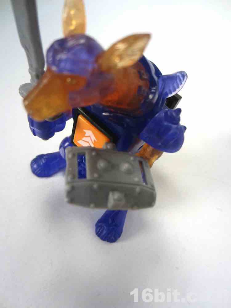 Unlike the original Battle Beasts toy which sports a punching fist, this guy has two normal blue hands used for holding his sword and shield - just like real kangaroos in Australia. He's a little hunched over, with his neck lurching forward This provides a nice contrast with the long-necked giraffe figures which tend to merely stand tall. At 2 1/2-inches high this figure isn't particularly sizable, but feels that he has a commanding presence on the toy shelf.