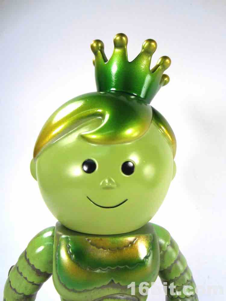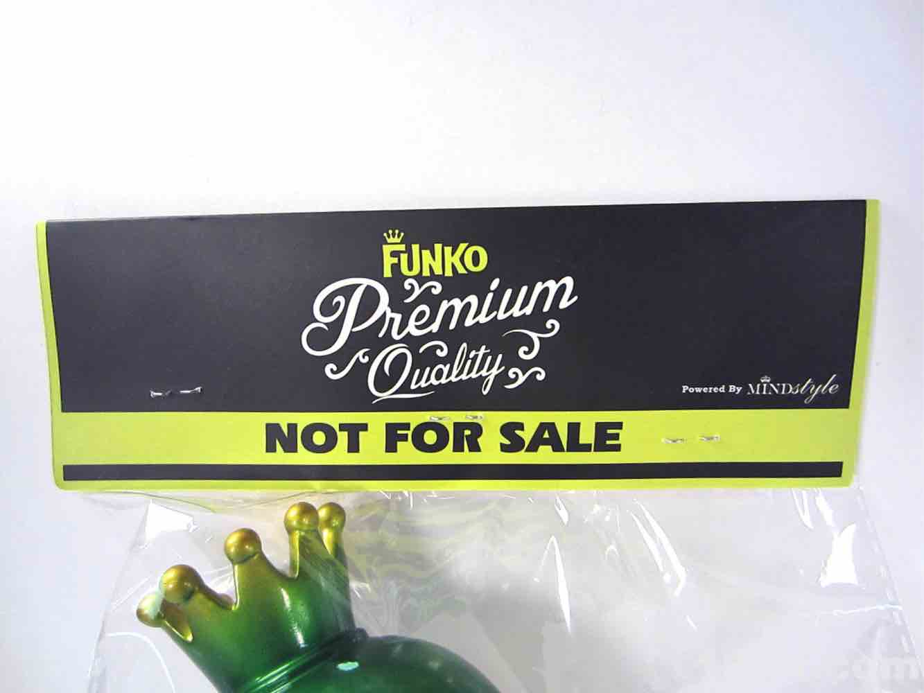 Freddy Funko's head has a metallic green finish over some gold. It can only be described as candy-like - it feels like some exotic, astonishing treat you were never allowed to have while also looking like a very expensive car. This kind of paint job is very rare on mass-produced toys, although you'll see it in the vinyl/kaiju scene from time to time at very high prices with low runs. To say the least, it's impressive - in person it feels like whatever it costs, it was worth it. As it was not for sale, it really kind of is priceless.